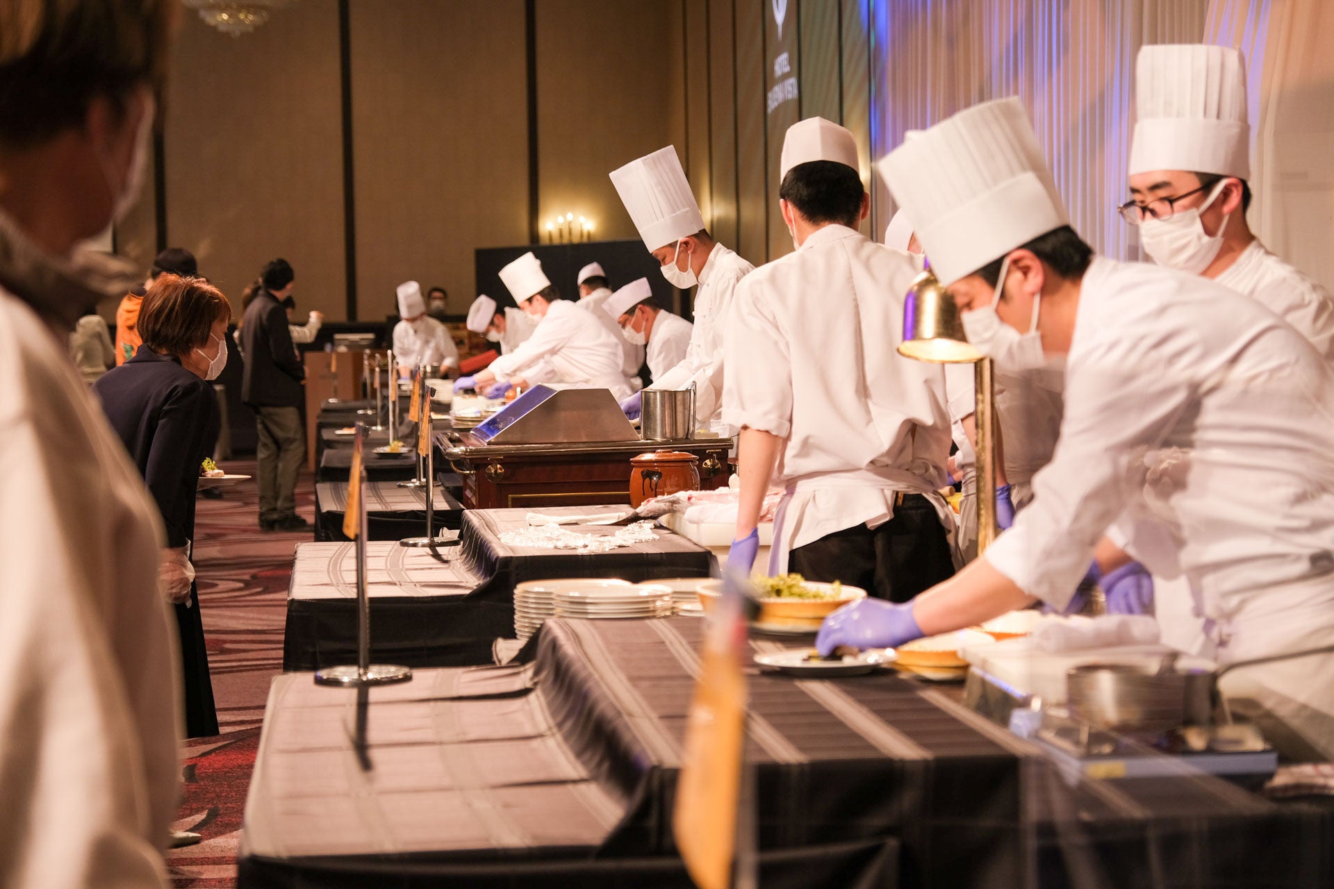 こちらも「食材の宝庫 宮崎 南国の情熱パワーとあたたかいおもてなしをふたたび」をテーマに開催。ホテルブエナビスタをはじめとするアルピコホテルズの各施設の料理長(合計9名)が一堂に集結し、各ブースを設けるライブキッチン形式で開催。