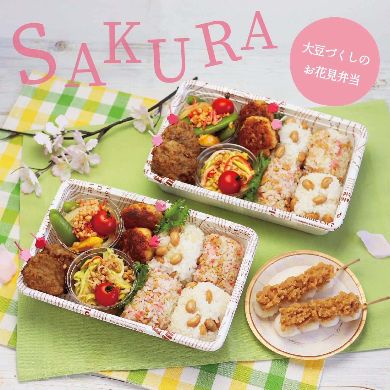 蒸し豆・佃煮・煮豆のマルヤナギブランドを展開する株式会社マルヤナギ小倉屋(神戸市東灘区 代表取締役社長:柳本勇治)は、便利なミンチタイプの蒸し大豆「おいしい蒸し豆 ひき肉みたいに使える蒸し大豆」を、2023年3月1日より順次全国のスーパー・小売店で販売開始いたしました。これを記念して、3月よりマルヤナギオフィシャルサイト内特設ページにて、ひき肉の半分を蒸し大豆にする“はんぶん大豆”のひき肉レシピを公開。この度発売記念レシピ第2弾として、ごはん、おかず、パンに蒸し大豆を合わせ、春の旬食材を使用した「春のお花見弁当」レシピを公開いたします。