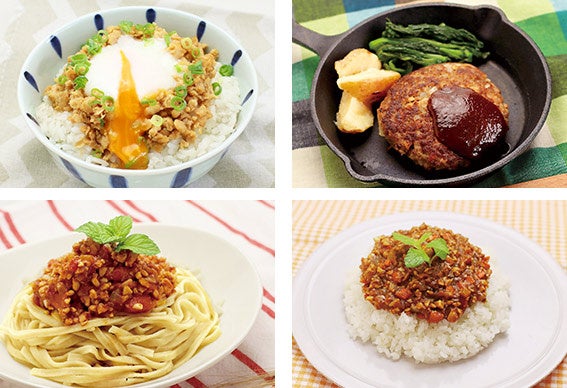 製造工程がシンプルでナチュラルなおいしさの蒸し大豆を、ヘルシーでサステナブルなたんぱく源としてもっと使っていただきやすくしたい。その思いからこの度、ひき肉に混ぜて使いやすいミンチ形状の蒸し大豆を新発売、さらに発売を記念して蒸し大豆を使ったレシピを順次公開しています。