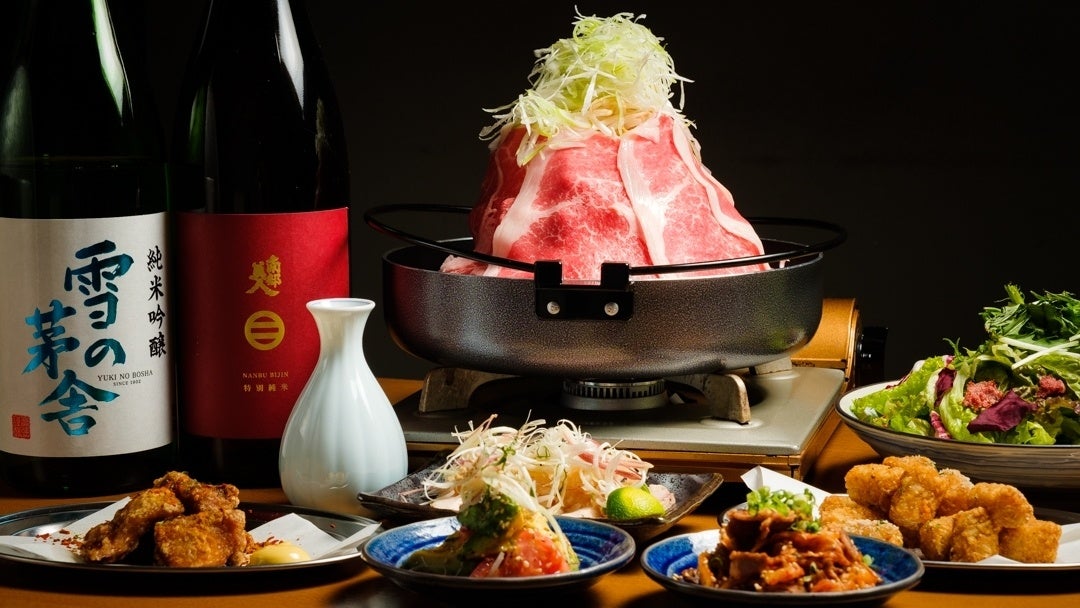 「黒毛和牛のすき焼き」霜降&赤身の2種食べ放題に、牛肉2種炭火焼もついた「春の黒毛和牛すき焼き食べ放題コース」を3,980円でご提供します。