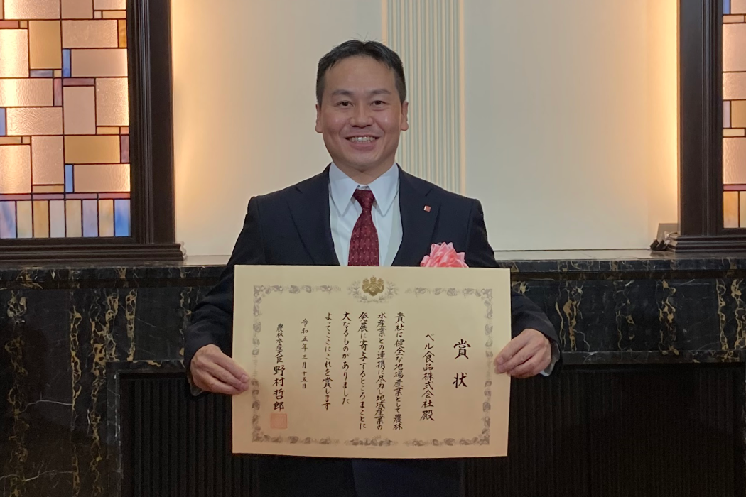 「成吉思汗たれ」「ラーメンスープ華味」「スープカレーの作り方」「ザンギ名人」など、北海道のソウルフードをご家庭で味わうためのたれ、つゆなどを製造販売する「北海道のソウルフードメイカー」ベル食品株式会社(本社:北海道札幌市西区、代表取締役社長:福山浩司、以下ベル食品)は、2023年3月15日(水)に学士会館(東京都千代田区神田錦町3−28)にて執り行われた一般財団法人食品産業センター(以下、食品産業センター)が主催する第44回食品産業優良企業等表彰式で、食品産業部門<農商工連携推進タイプ>の最高賞である農林水産大臣賞を受賞し、賞状が授与されました。