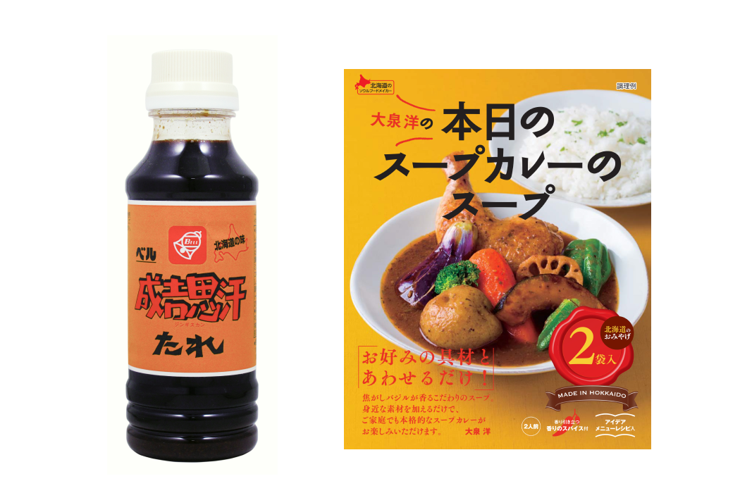 ・持ち運びしやすいよう、瓶ではなくペットボトル入りの「ジンギスカンのたれ」や、箱の中に個食用小袋タイプの「ぶた丼のたれ」、「スープカレーの素」、地域の有名店とタッグを組んだ「有名店のレトルトカレー」などを土産専門品として特別に開発し、土産屋専門の販売問屋と組んで、新千歳空港の売店などで販売している。また、土産専門品を本州の量販店チェーンに提案し、北海道フェアなどで販売している。