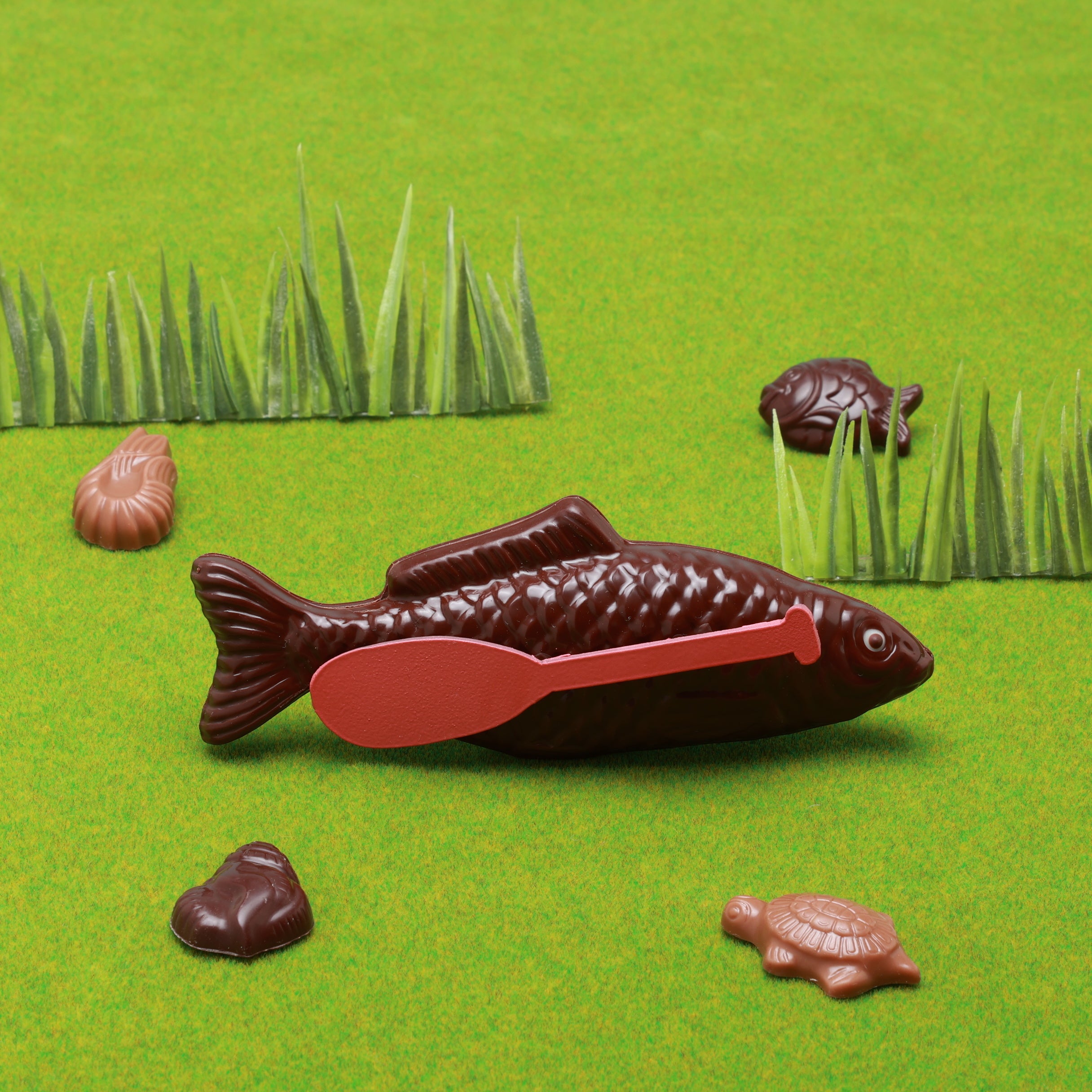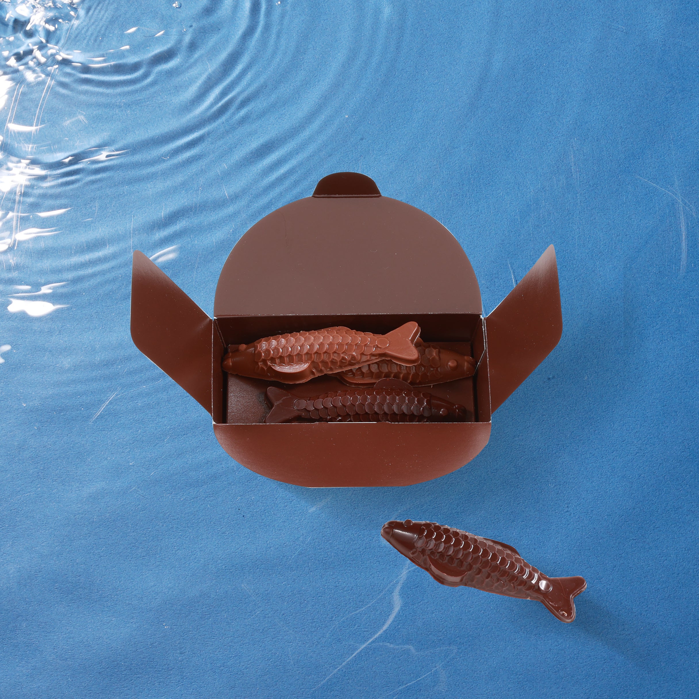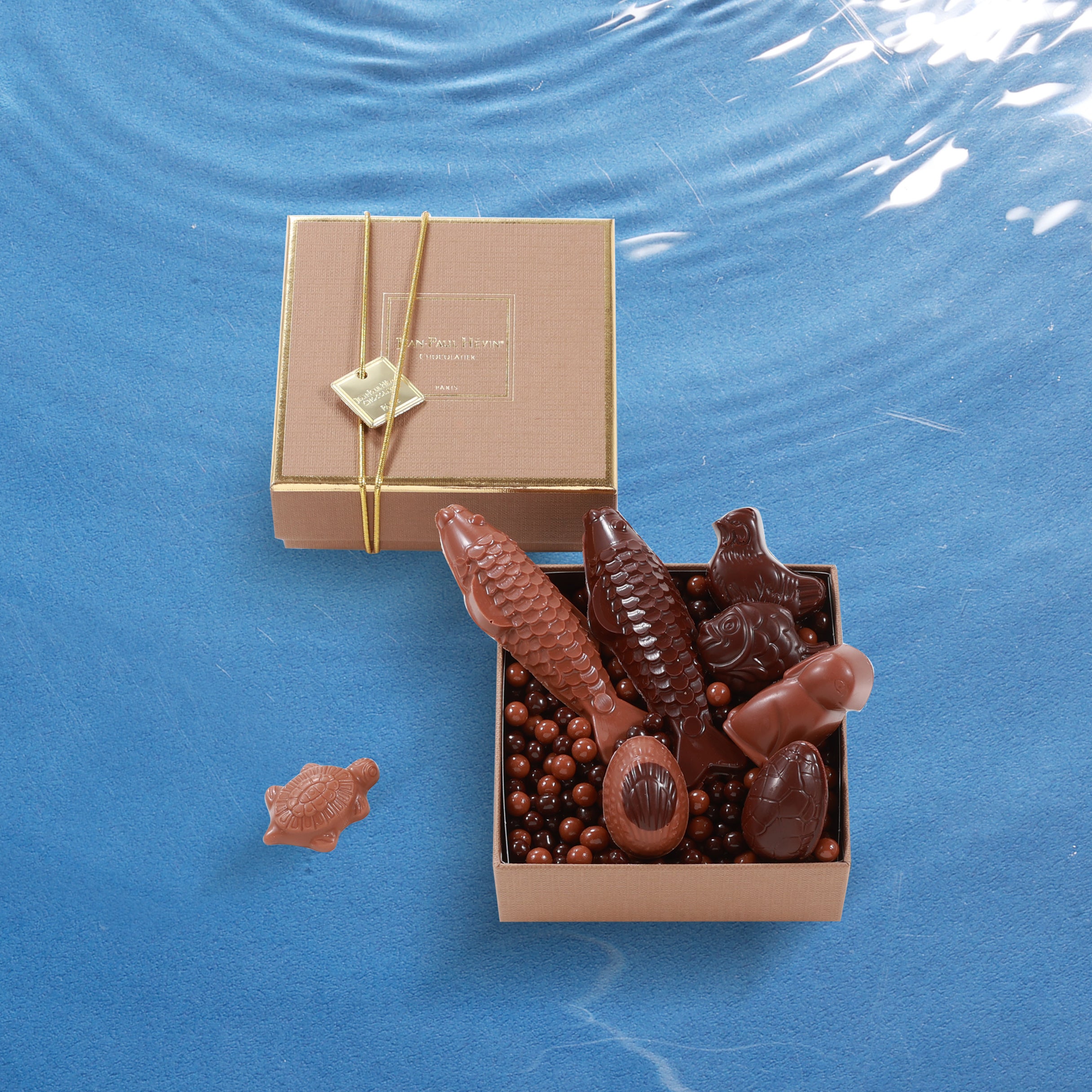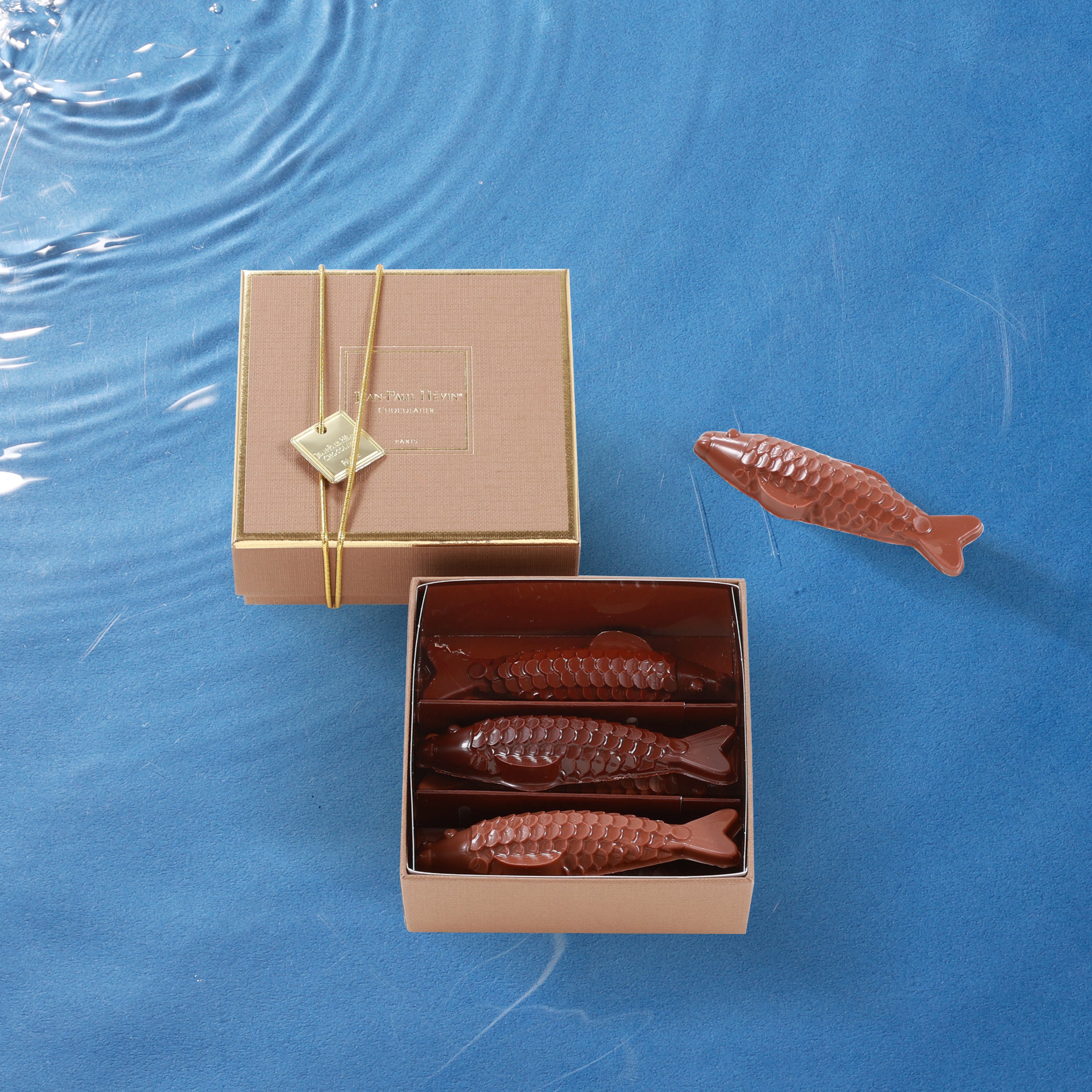 魚の中には、海の生き物をかたどったショコラ「フリチュール」が4個入っています。