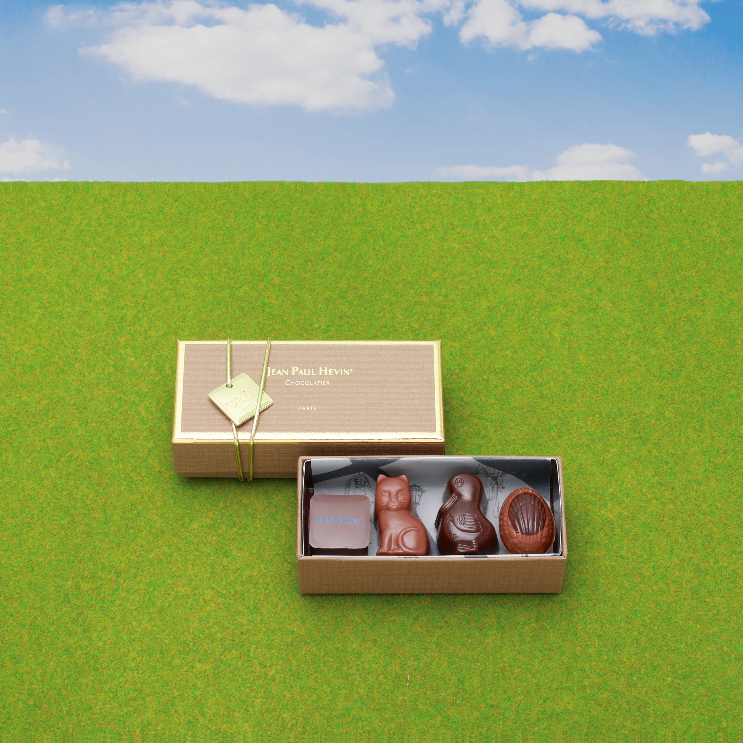 期間限定の動物型ショコラ「アニモ」、卵型の「ウフ」を含むボンボンショコラ4個詰合せ。