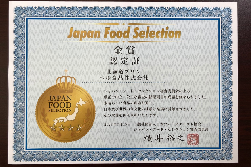 「成吉思汗たれ」「ラーメンスープ華味」「スープカレーの作り方」「ザンギ名人」など、北海道のソウルフードをご家庭で味わうためのたれ、つゆなどを製造販売する「北海道のソウルフードメイカー」ベル食品株式会社(本社:北海道札幌市西区、代表取締役社長:福山浩司、以下ベル食品)が2022年8月に発売した「北海道プリン4個入(以下北海道プリン)」は、一般社団法人日本フードアナリスト協会が主催する第61回ジャパン・フード・セレクション(2023年3月)において金賞を受賞しました。