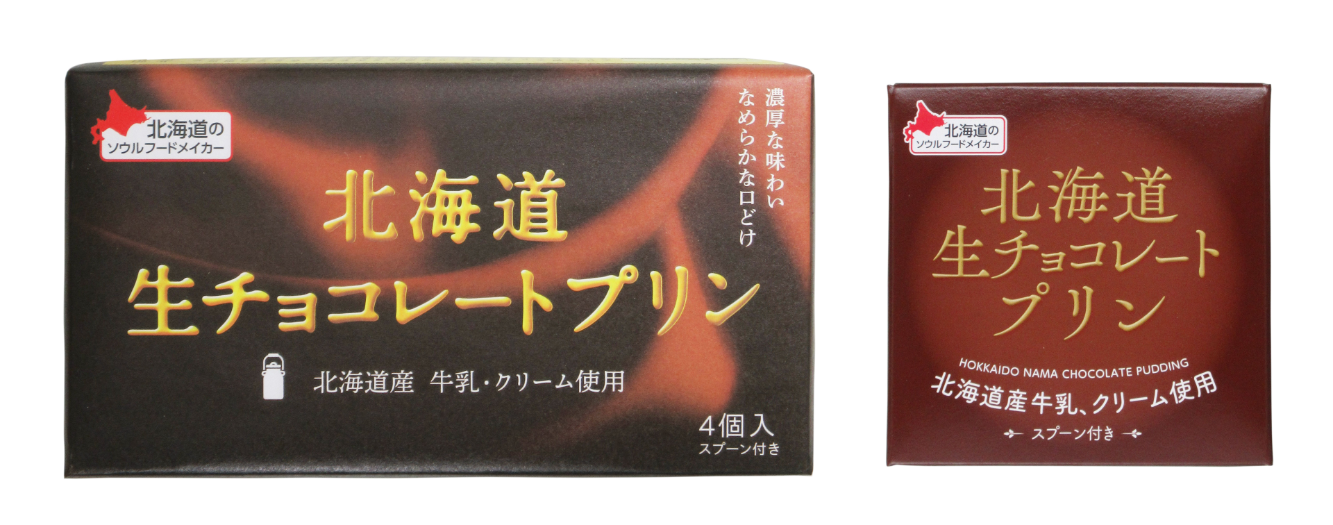 カカオのビターな香りにほんのり洋酒の香りがアクセントとなっています。こちらも常温で長期保存が可能で、持ち運びや保管場所を選ばない「いつでもどこでも食べたいときに食べられる北海道スイーツ」です。「北海道プリン」と同じく、お土産、ギフト、催事向けの4個入と一般小売向けの1個入の2種類を販売しています。