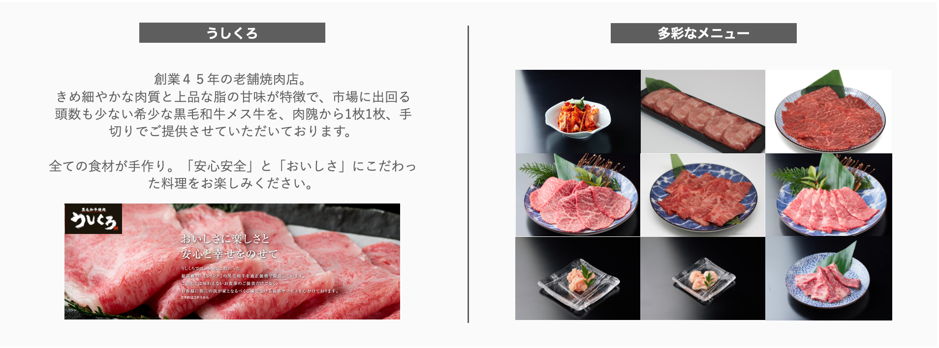 「うしくろ」をはじめ有名店の味を楽しめる !