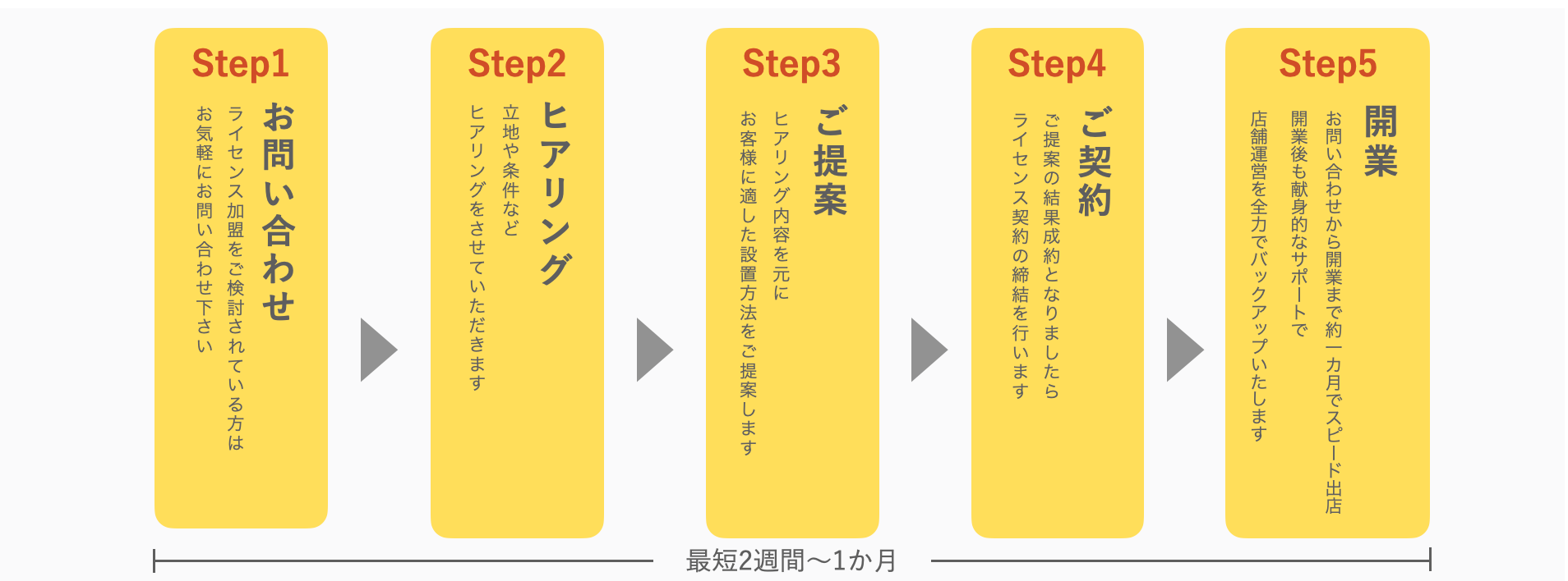 1ヶ月でスピード出店!開業前・開業後のサポートもお任せください。