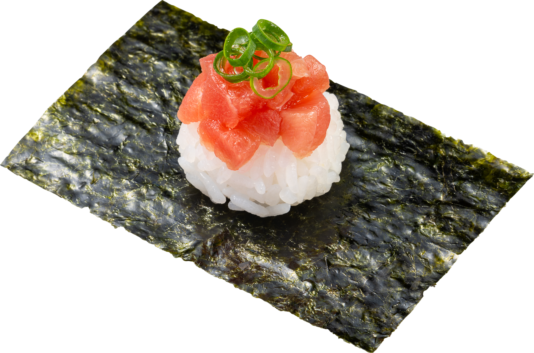 『天然まぐろ中とろアボたくのせ』一貫187円(税込)