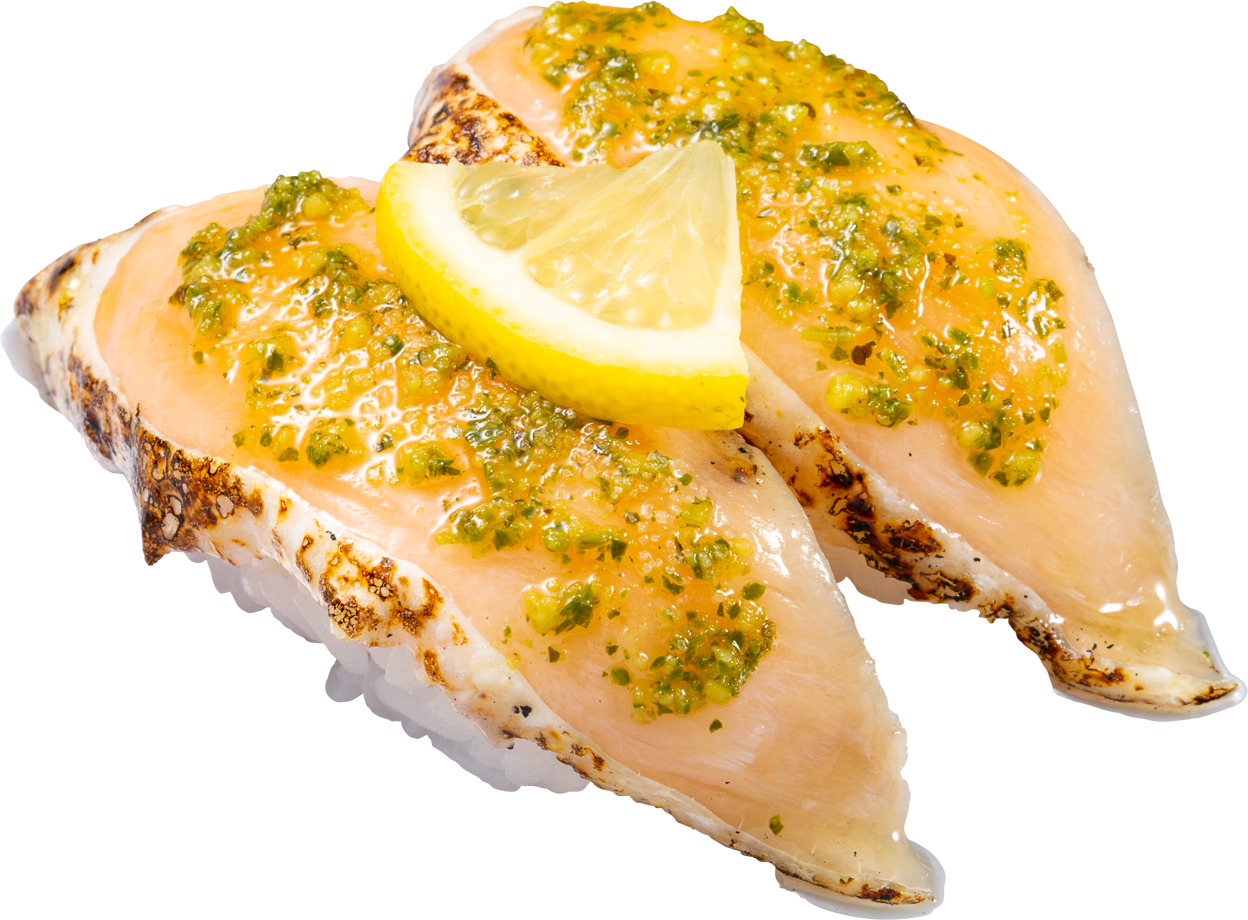 『焼きサーモンバジル塩レモン』二貫187円(税込)