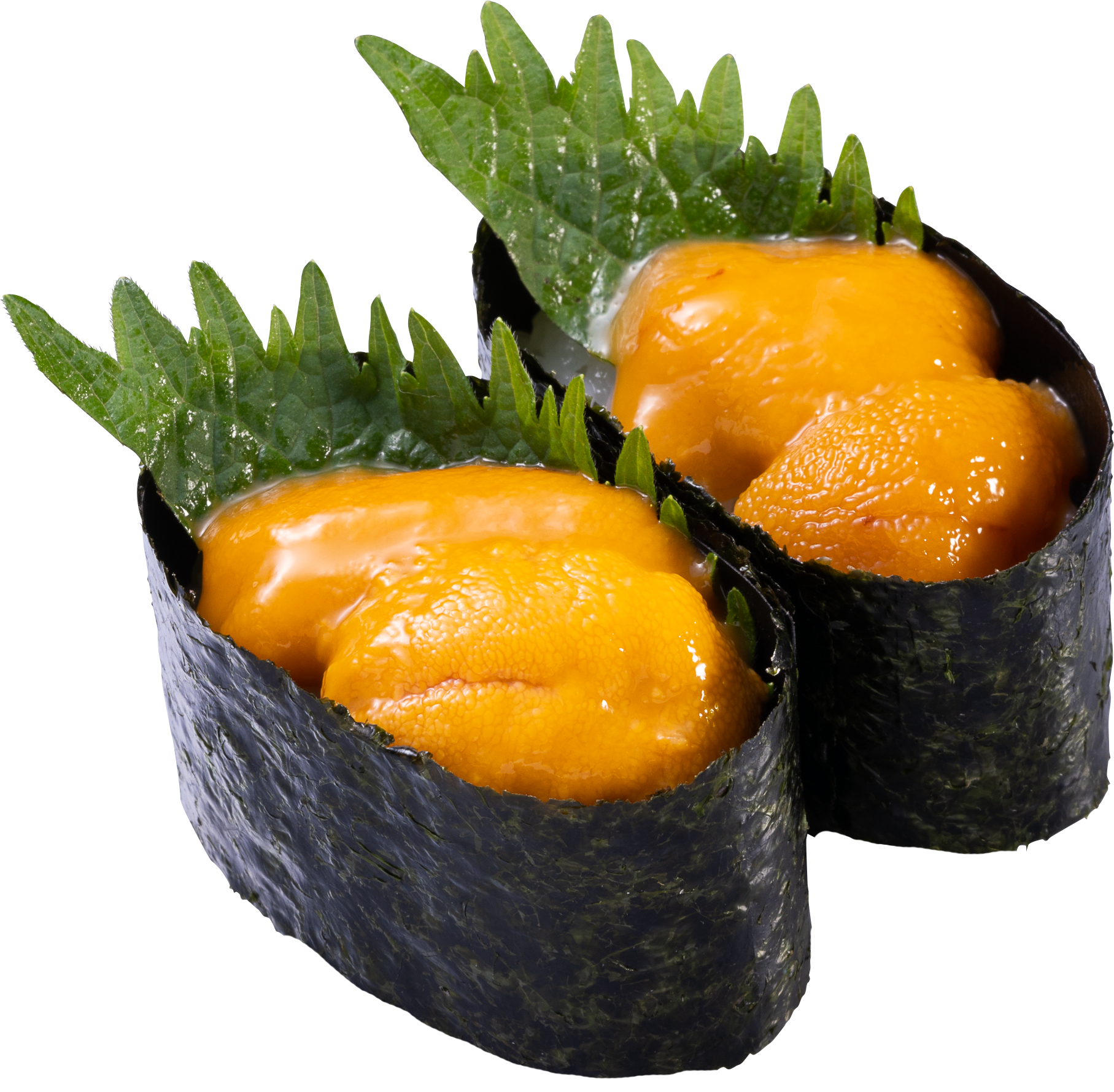 うにの濃厚な甘みや旨みと大葉のさわやかな風味が相性の良い王道の軍艦です。