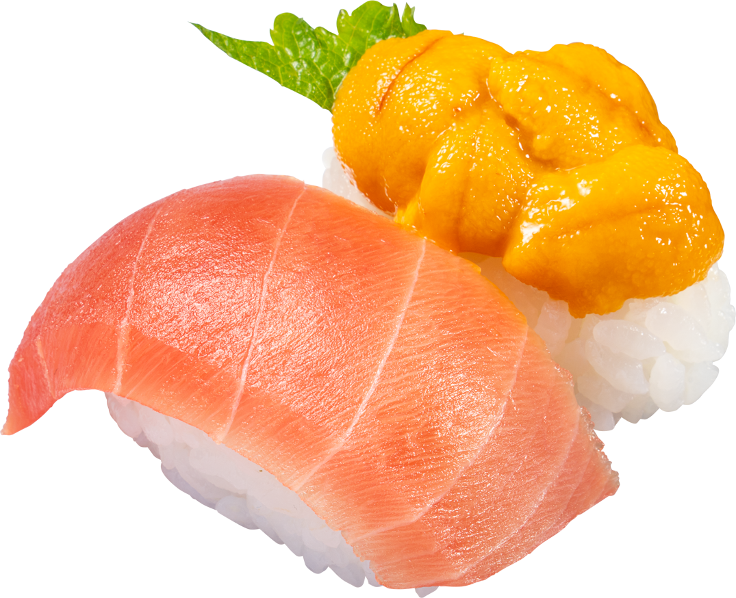 天然まぐろ中とろとうにのにぎりを合盛りにした贅沢な一皿です。