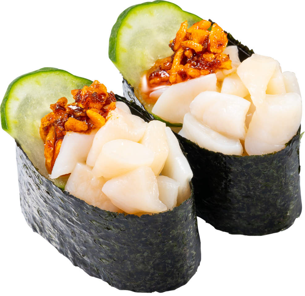 『つぶ貝刻みザク旨ラー油軍艦』二貫110円(税込)