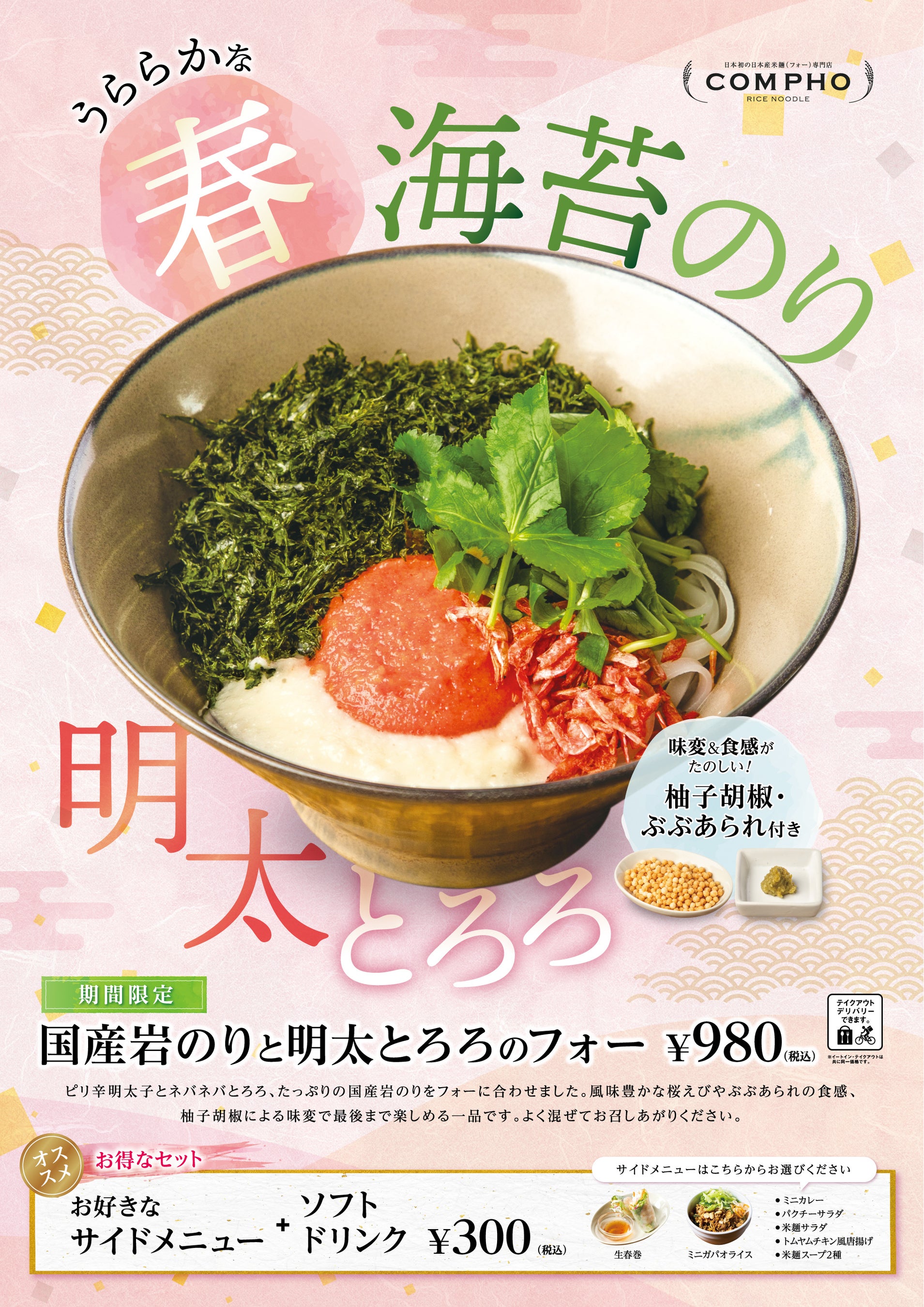 - この春の期間限定メニュー「国産岩のりと明太とろろのフォー」