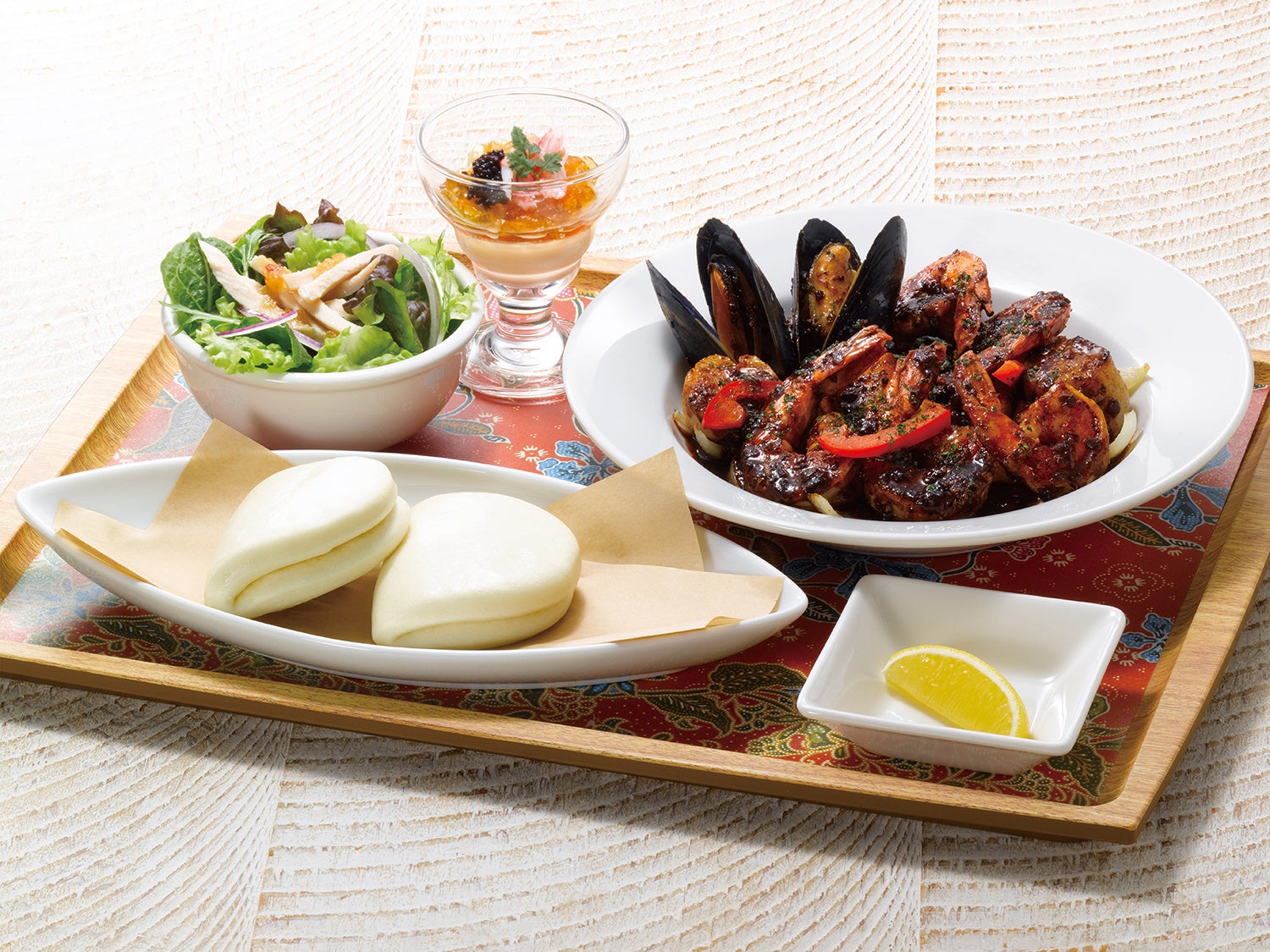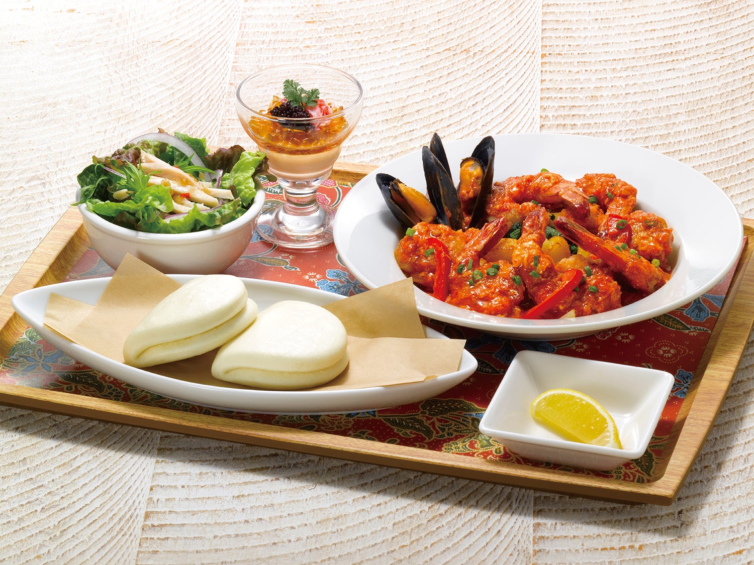 1950年代、シンガポールの海鮮料理屋から生まれたとされる「チリクラブ」。この世界的に有名な料理をイメージし、プリッとした海老・帆立・ムール貝・ポテト等に溶き卵を加えたチリソースを合わせました。辛みの中にも卵のマイルドなコクを感じる美味しさです。割包(クワパオ)に挟んだり、ちぎってソースをつけてお楽しみください。