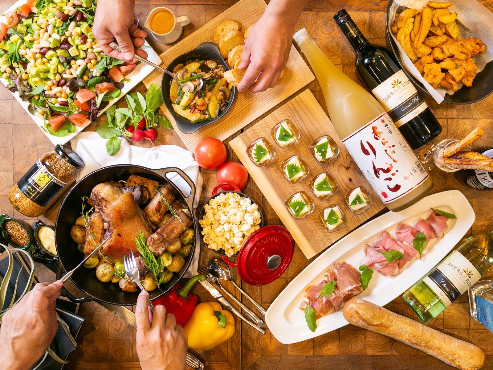 シェフの作り出す映え料理は「キャンプ飯」をイメ―ジ!日頃、結婚式で腕をふるっているシェフ渾身の「キャンプ飯」と共に、40種類以上の豊富な飲み放題ドリンクメニューを楽しめる1日1組様限定のスペシャルなプランをご提供いたします。