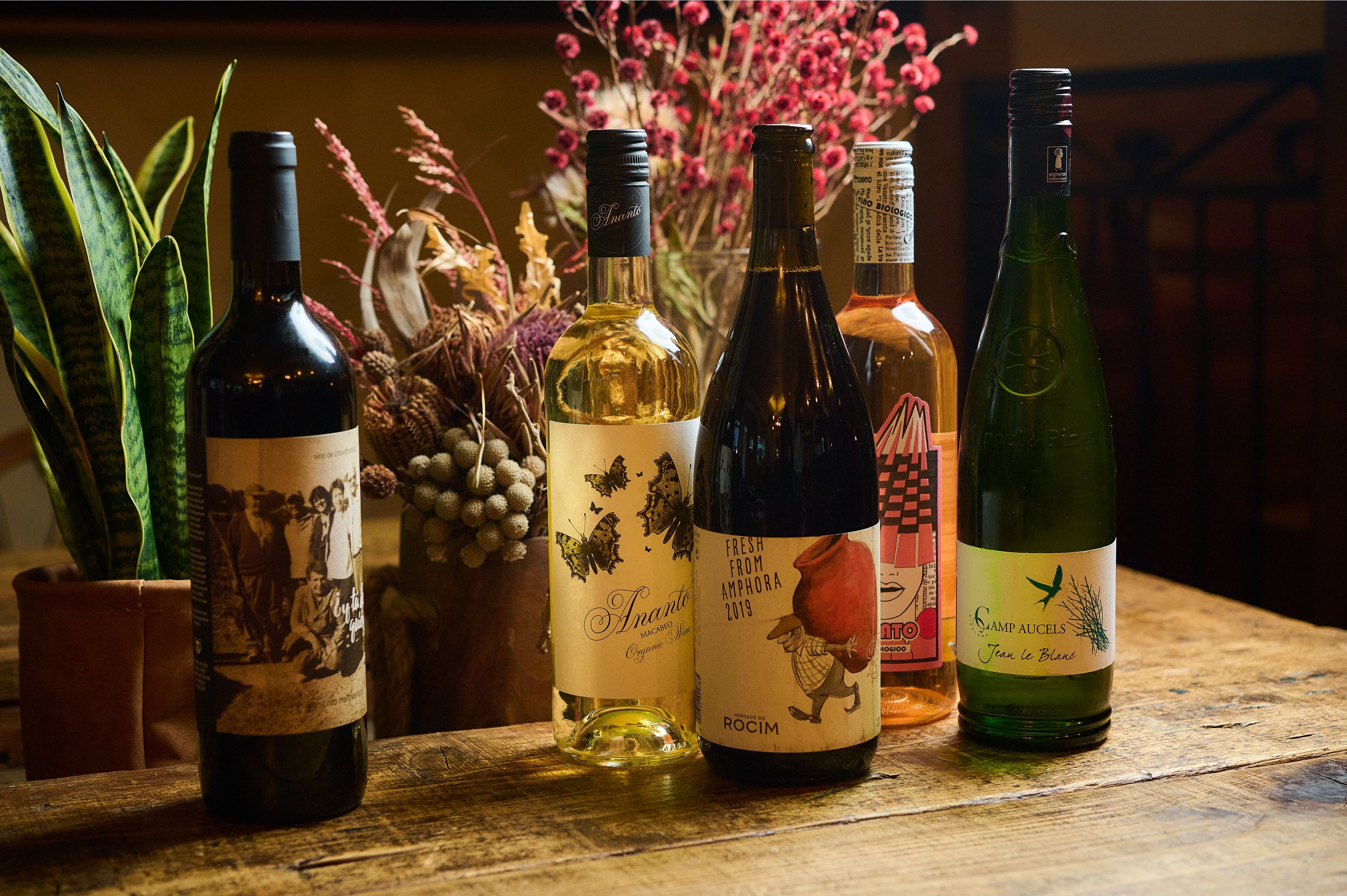 ワインは自然派ワインからオーセンティックまで豊富にラインナップ。その他、ビールやウイスキーなど、お食事に合わせて幅広くご用意しております。