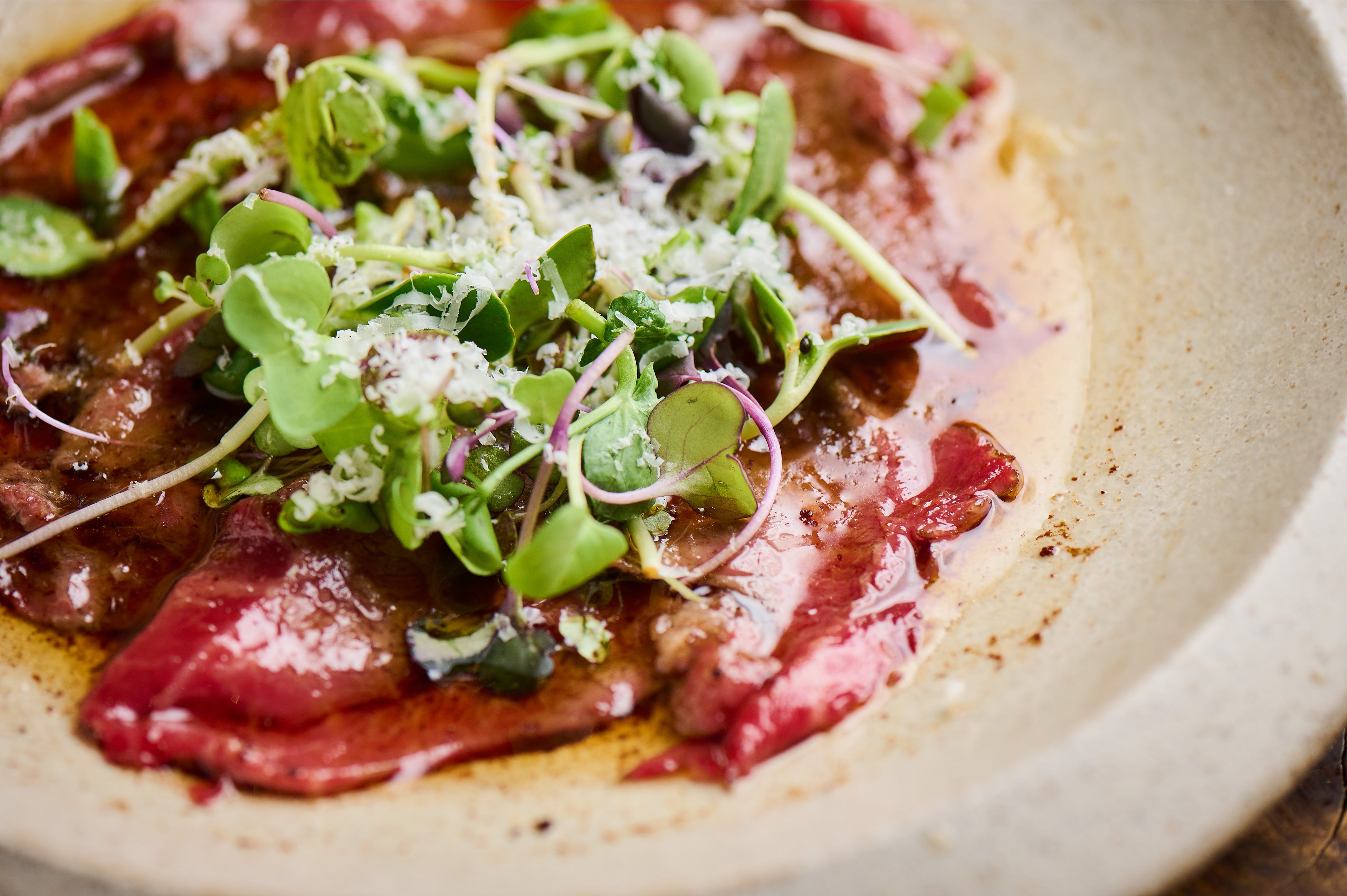 - 峯村牛と江戸前ハーブのあぶりカルパッチョ/2,100円