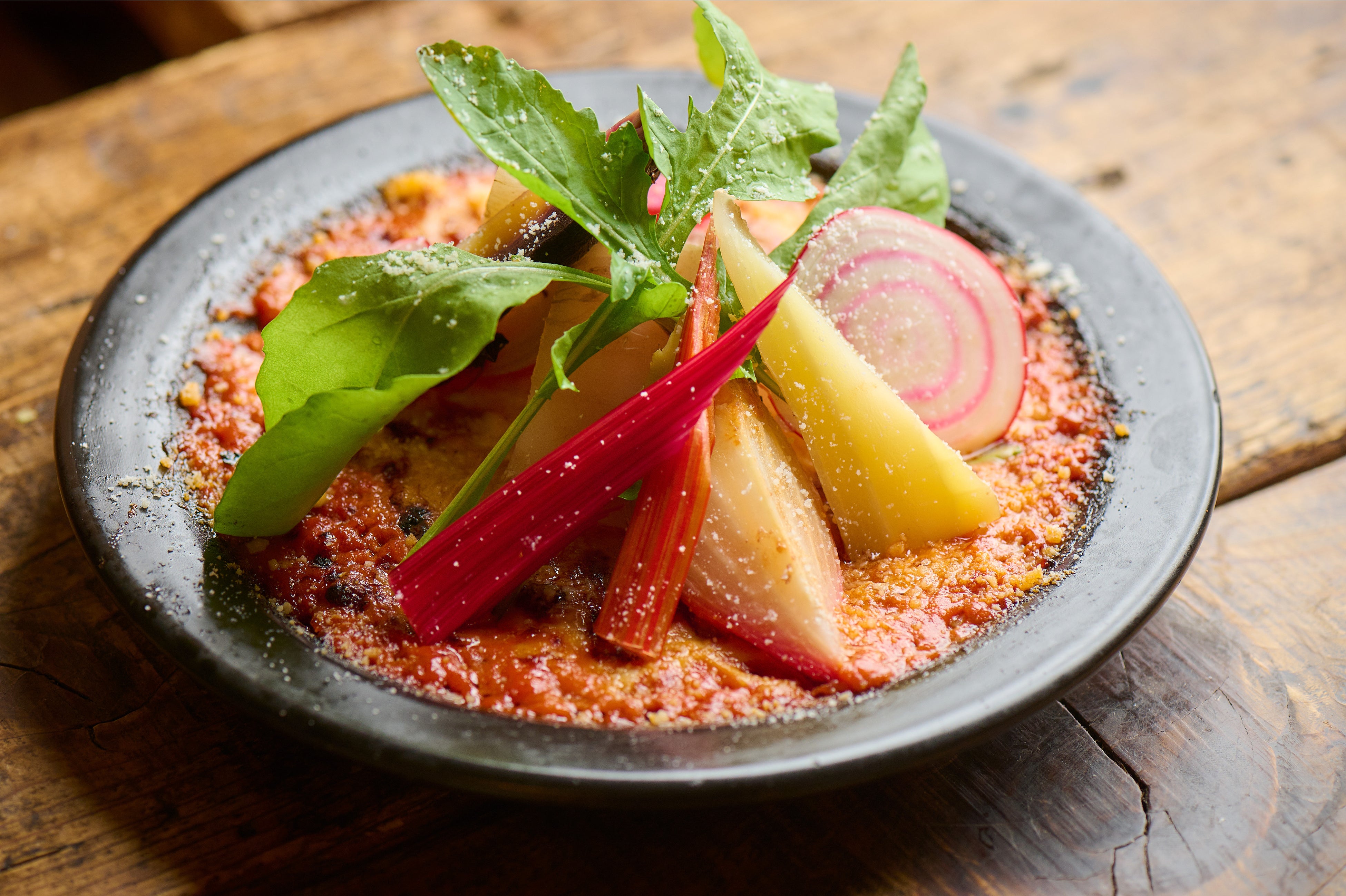 千葉県木更津市にある「KURKKU FIELDS」で水牛を育てている日本で唯一の水牛モッツァレラ職人・竹島英俊氏の作るモッツァレラや、北八ヶ岳のボヌムテッレの化学農薬・肥料を用いずに育てられたカラフルで甘みの強いお野菜、アニマルウェルフェアに配慮した環境で育てられた信州プレミアム峯村牛のステーキなど、足を運んで見つけてきたユニークな食材の特性を最大限に引き出した調理でご提供します。
