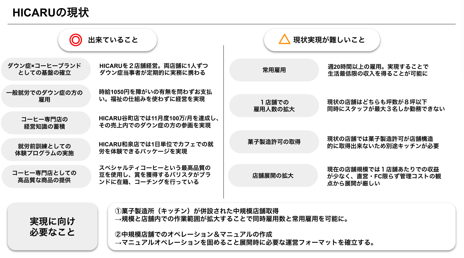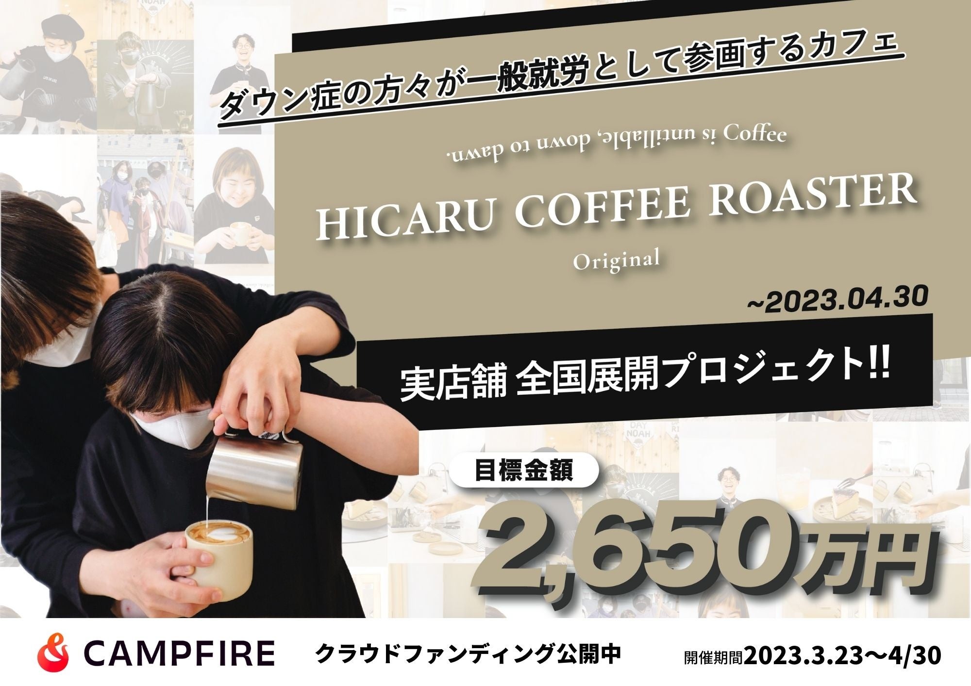 ダウン症の方々と共創するコーヒーブランド「HICARU」を手がける株式会社ORCa(本社:大阪市北区 代表:山中英偉人)が実店舗を全国展開するための2650万円を目標としたクラウドファンディングをGoodMoring(CAMPFIRE)にて開催します。