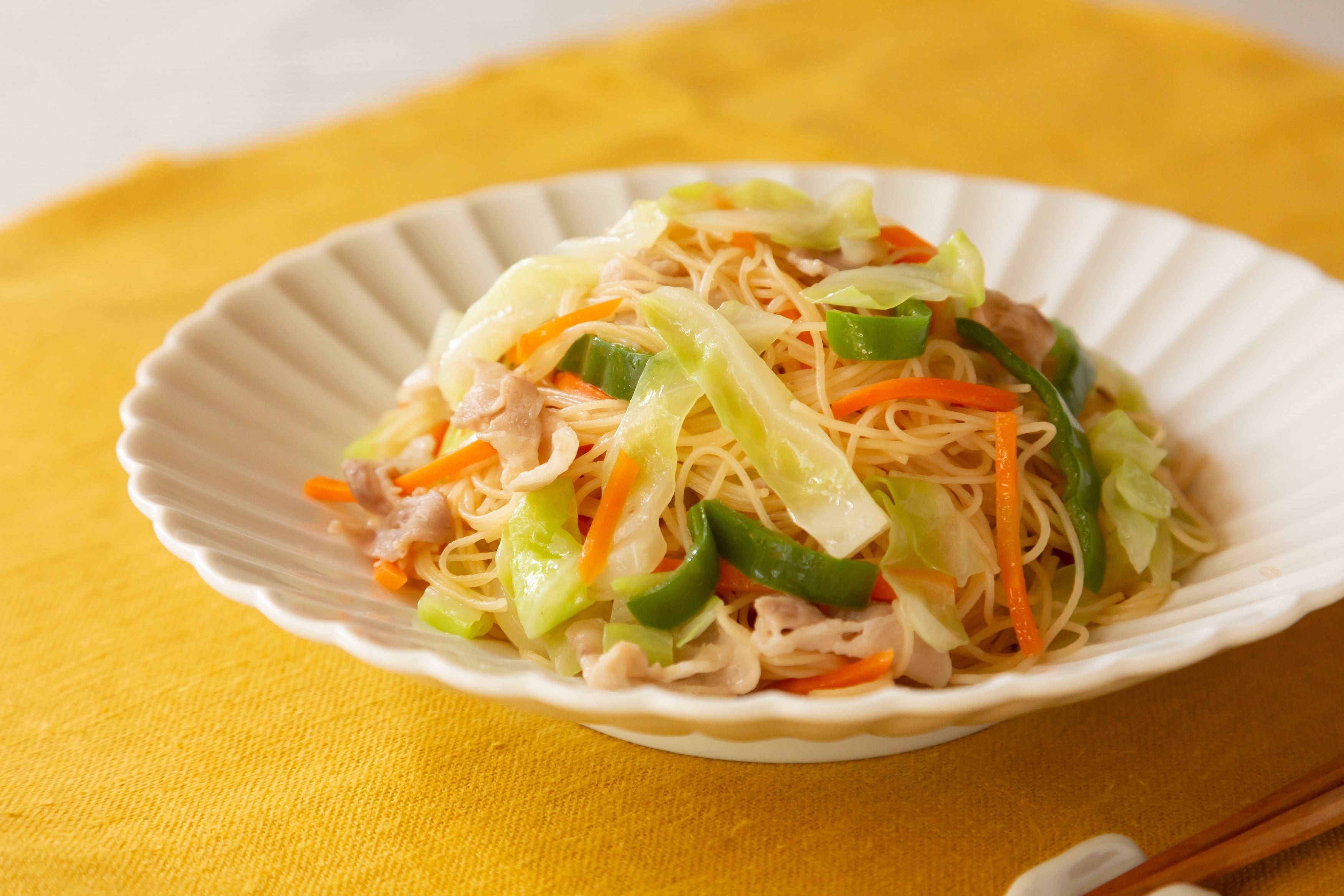 1960年に誕生のロングセラー商品。最も長く販売されている焼ビーフンブランドとして、ギネス世界記録™に認定されました(2020年1月31日登録)。ゆで戻し・味付け不要で、フライパンで簡単に美味しく調理することができます。鶏のだしが効いた昔ながらの醤油味で、シリーズ品として「こく旨塩味」、「幻のカレー」、「汁ビーフン」を展開しています。