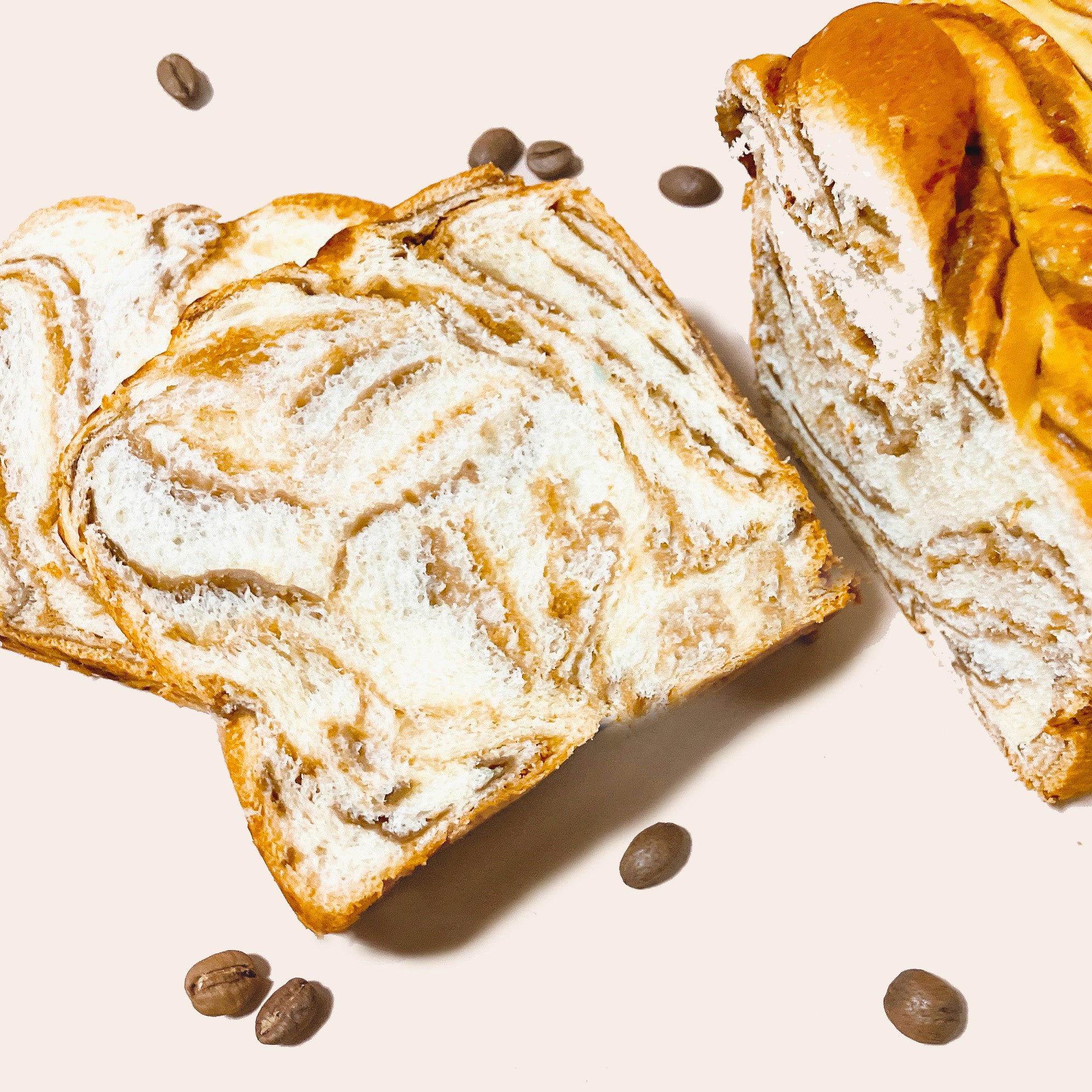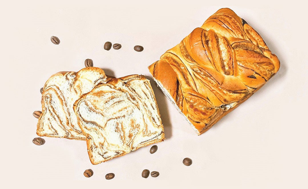 スイート生地に珈琲餡とコーヒーシートを使用し編み込みました。