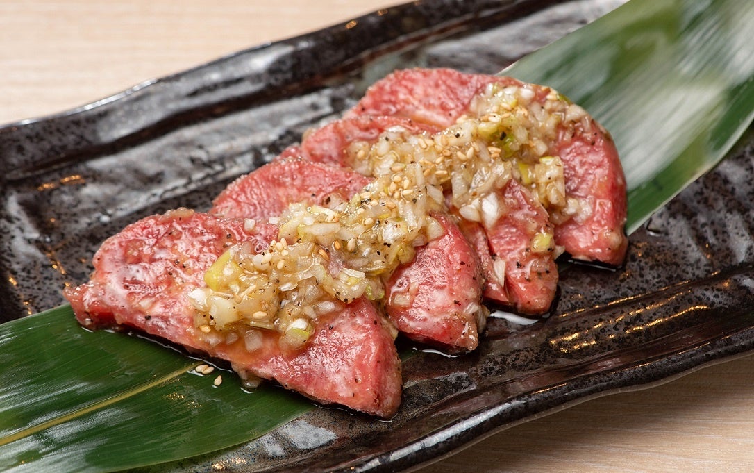 ときわ亭⽜たんにニンニクの効いた特製塩だれとねぎをトッピング︕