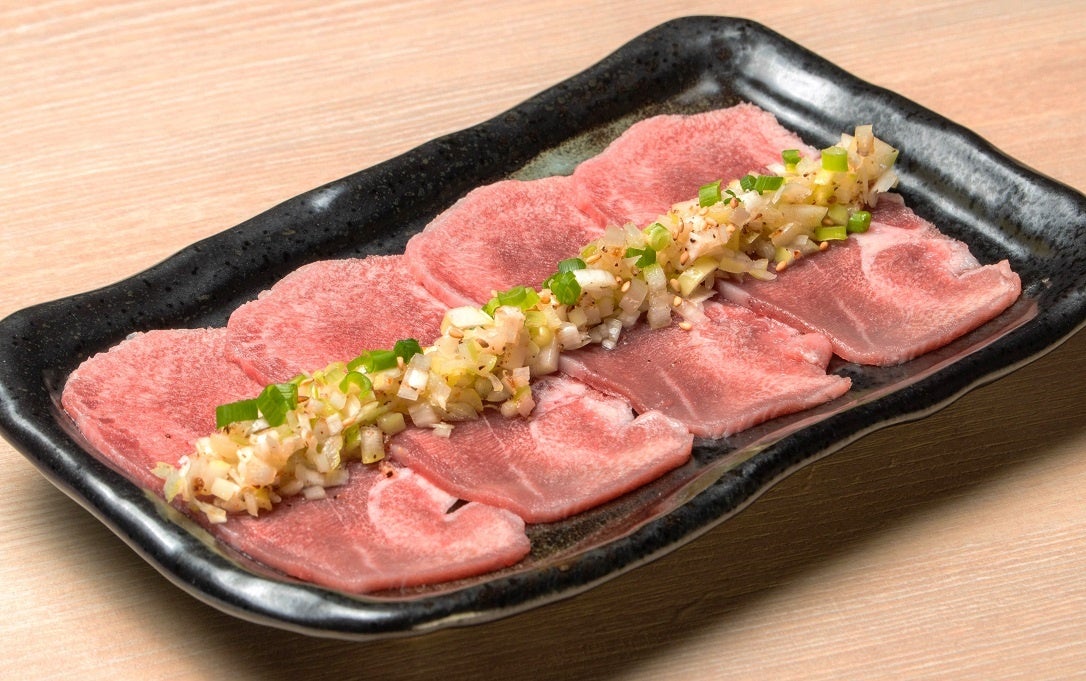 ときわ亭⽜たんにニンニクの効いた特製塩だれとねぎをトッピング︕