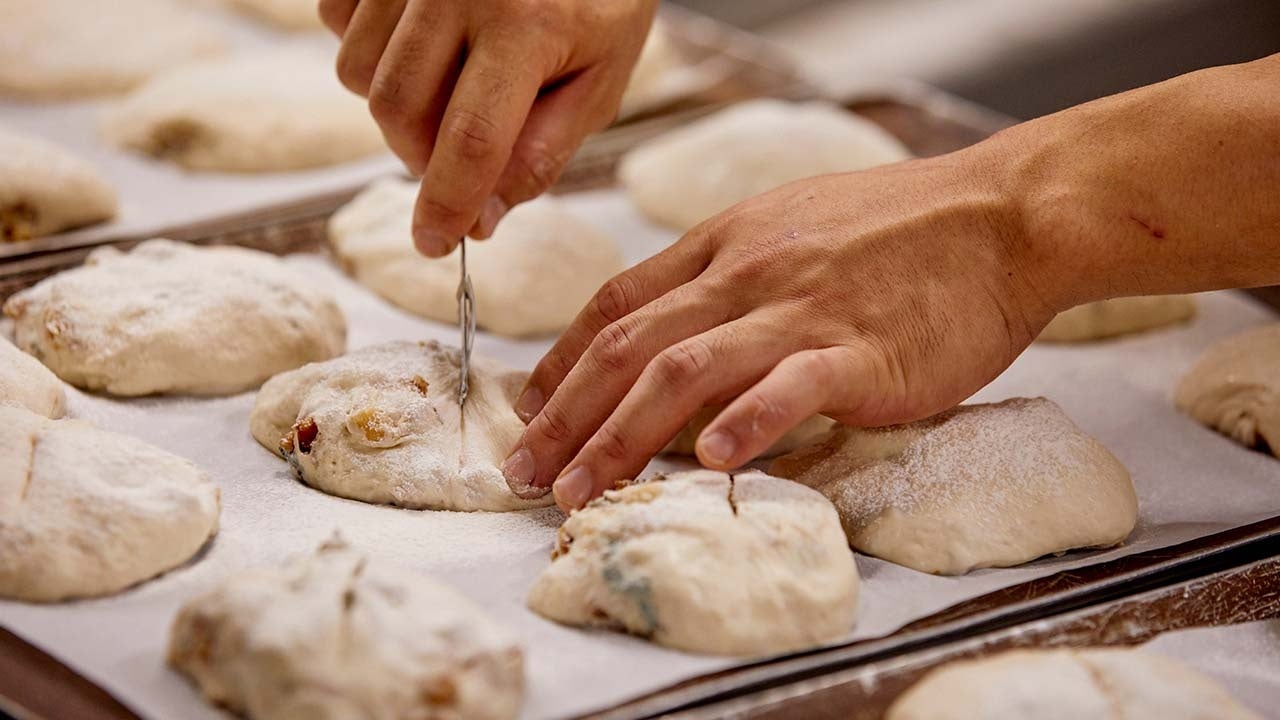 気温や湿度によって状態が変わる生地と実直に向き合い、いつも変わらぬおいしさに焼きあげているのがベーカリー職人。定番商品も折に触れてレシピや製法を見直し、粉の配合からミキシング、発酵、成形、焼成に至るまで改良を続け、それぞれのパンの理想の味わいや食感を丁寧に形にしています。