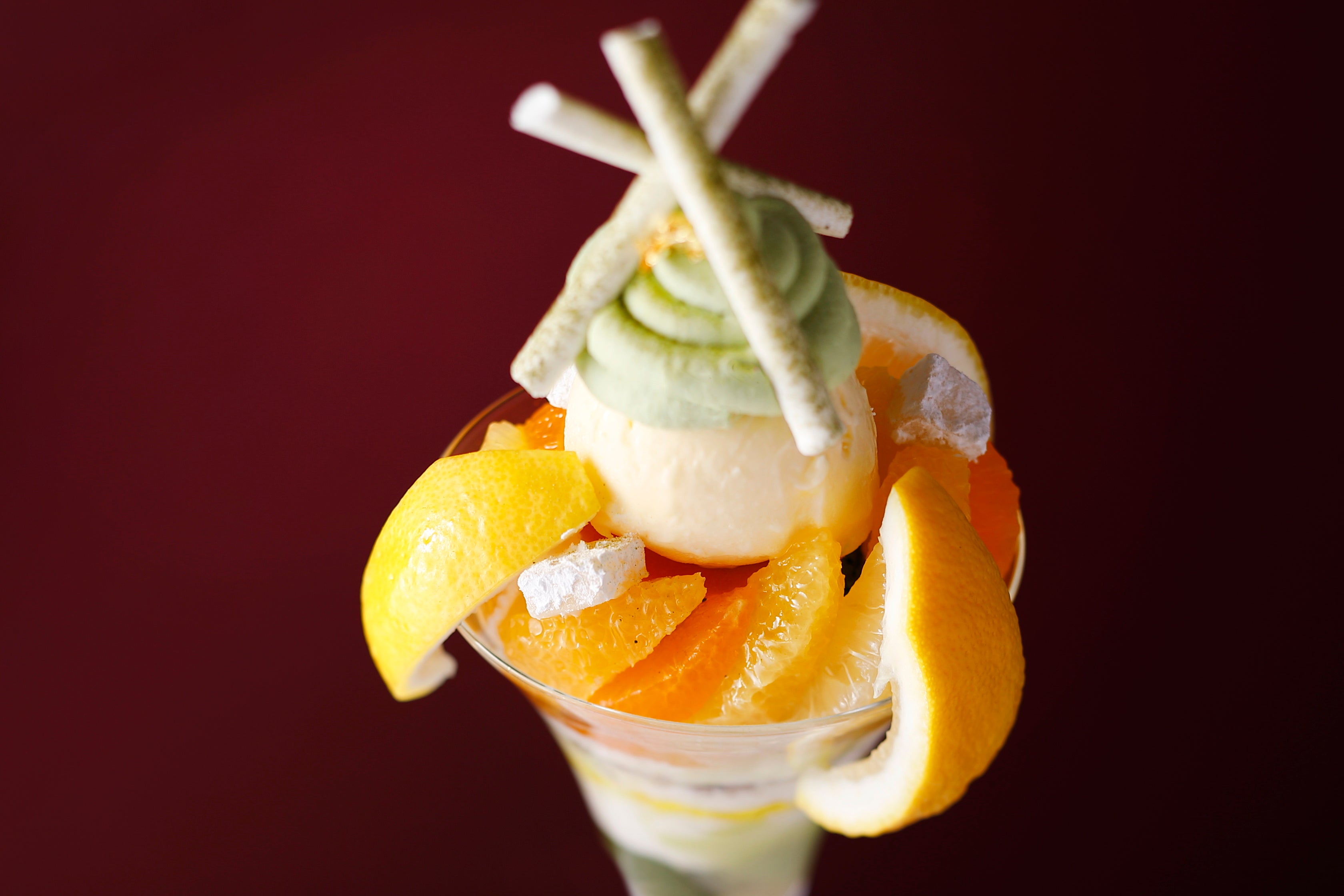 - ◆『国産の柑橘と静岡県産“霧の音”抹茶のパフェ』 3,000 円