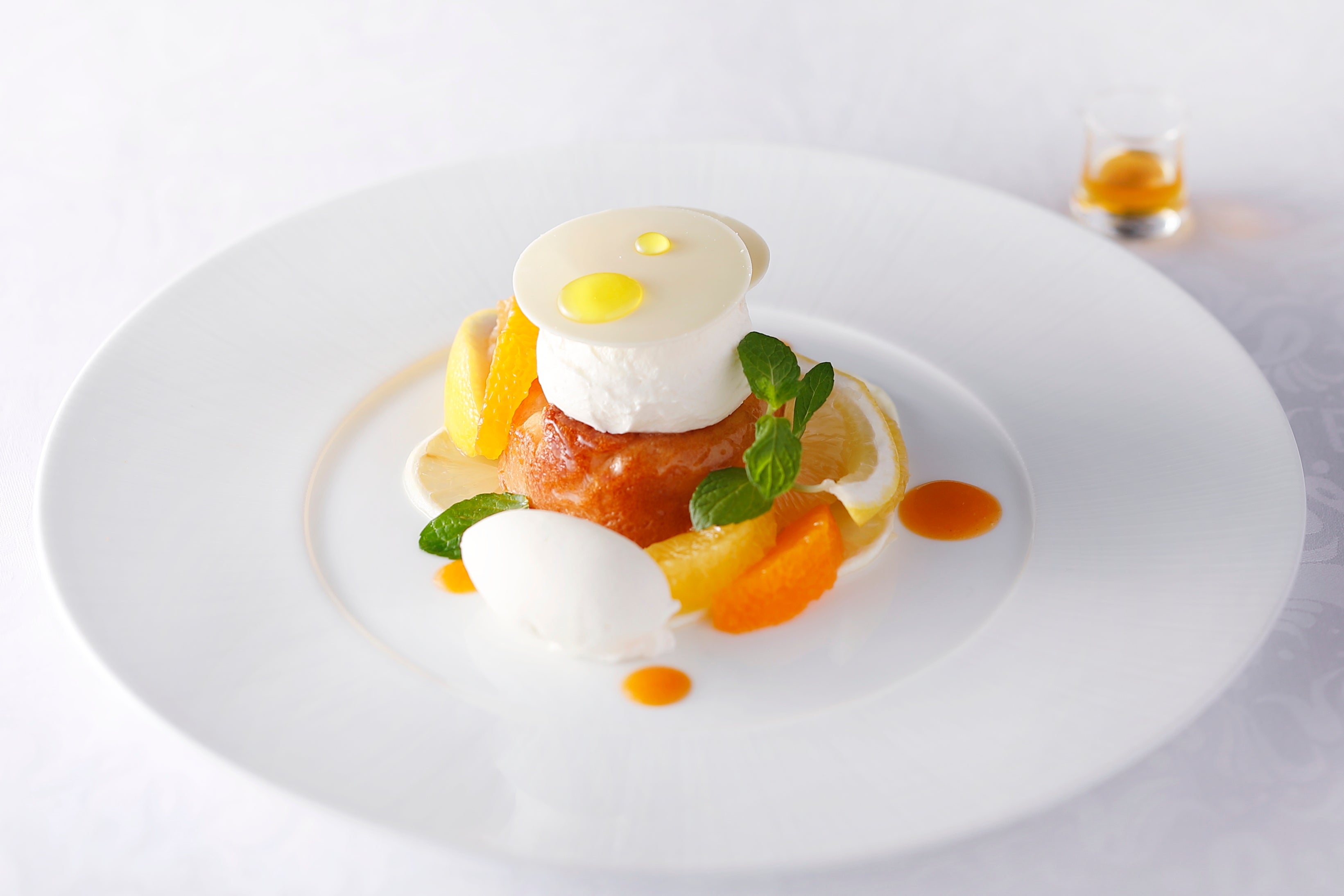 - ◆『柑橘 3 種のサヴァランと銀座はちみつ ジャージーミルクアイスクリーム添え』 2,400 円