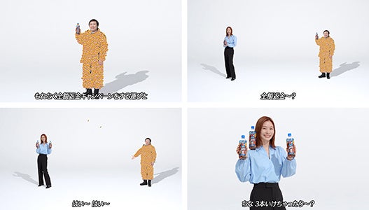 「全額返金キャンペーン」応募用のアイキャッチシールの付いた〈生〉体感ボトルを持ち、ペプシ〈生〉のリニューアルに心躍らせる朝日さん。そこに「はい~。リニューアルしておいしくなったんです、はい~」とお馴染みのフレーズを織り交ぜながら、アイキャッチシールを全身にまとったやす子さんが登場します。「全額返金キャンペーン」を解説するやす子さんといまいちピンとこない朝日さん。そんなおふたりの掛け合いからやす子さんがアイキャッチシールを朝日さんに向かって連投!?最後にはリニューアルした「ペプシ〈生〉」の味をまず確かめたい朝日さんの飲みカットで終了します。