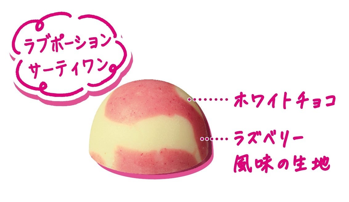 ・甘酸っぱいラズベリー風味の生地とホワイトチョコをマーブル状に仕上げ、ラブポーションサーティワンの見た目と味わいを表現