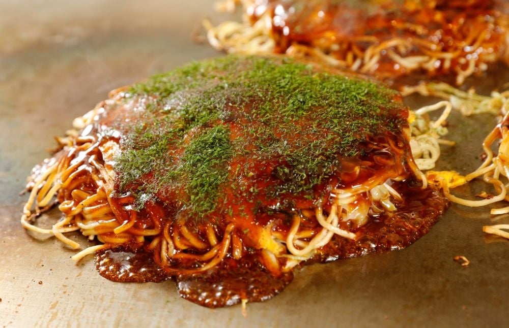 お好み焼きの二大聖地 広島&大阪の、日本コナモン協会会長 熊谷真菜さんおすすめの名店が集結したイベントから。みっちゃんこと初代 井畝満夫の味を守 り、創業70年を超える広島最古参といわれるお店が登場!パリっと焼いた麺の上に、卵や蒸し焼きにした甘みのあるキャベツなどの具材を重ねた、広島のスタンダードなお好み焼きを頬張って!