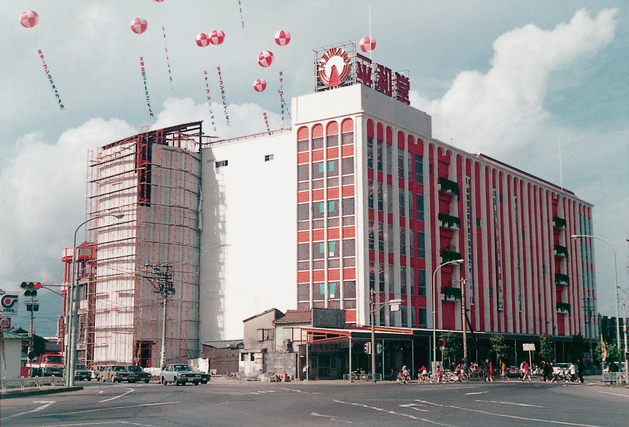 第1次オイルショックが起こる直前の1973年10月、福井県敦賀市に県下最大のショッピングセンター「敦賀店」が、滋賀県外1号店(平和堂8号店)としてオープンしました。