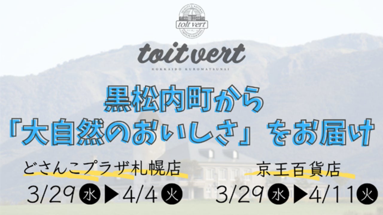 SDGs販促を推進するインパクトホールディングス株式会社 (東証グロース・証券コード:6067) の完全子会社で、人材サービス事業およびまるごと催事事業 (催事企画・運営) を展開している株式会社サツキャリ (本社:北海道札幌市中央区、代表取締役社長:川田 孝、以下「当社」) は、2023年3月29日(水)より、どさんこプラザ札幌店・京王百貨店にて北海道黒松内町のブランド 「トワ・ヴェール」 のチーズ、ハム、ソーセージなどを販売する催事を期間限定で開催いたします。