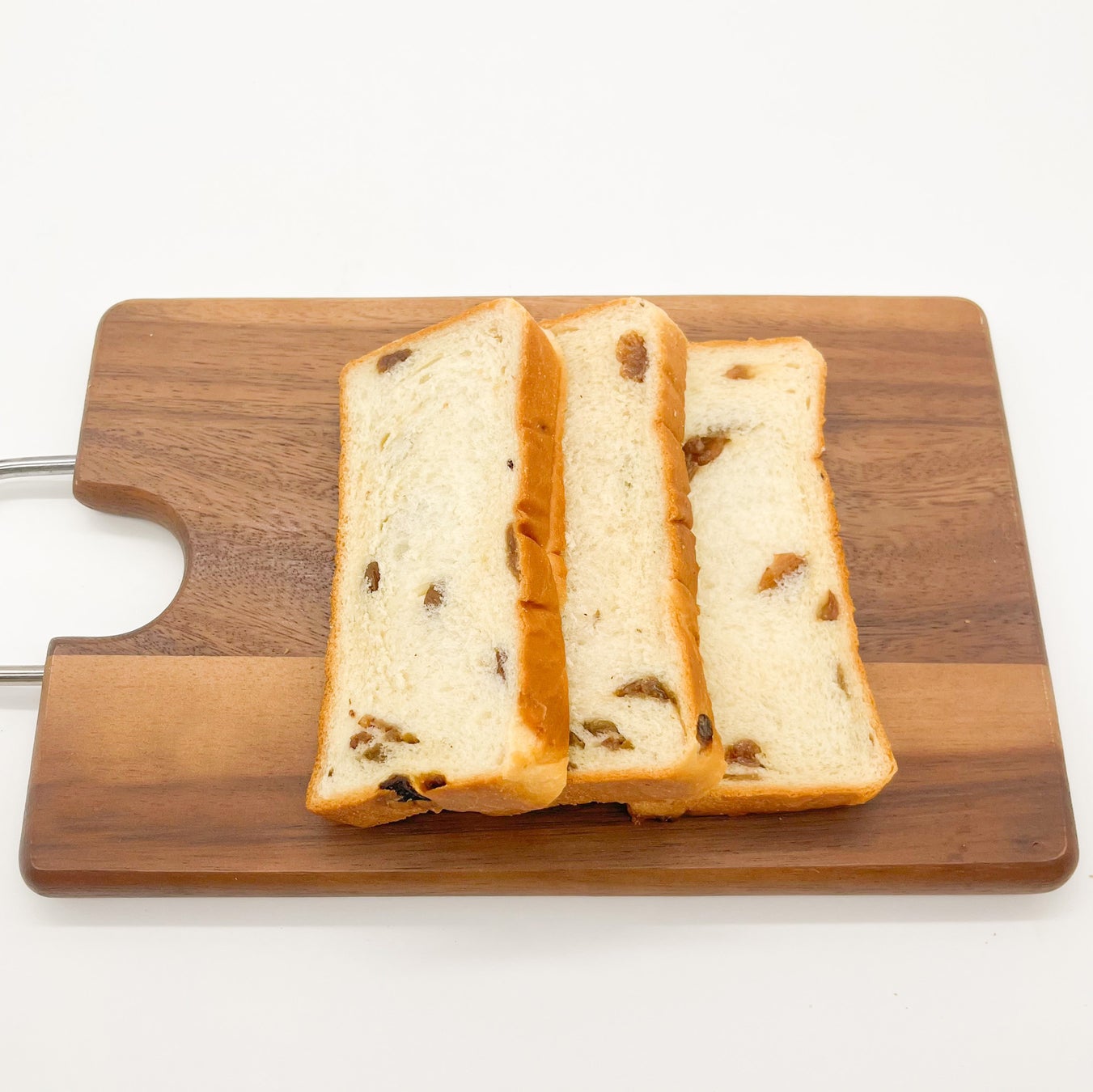 しっとりとした食パン生地にマスカットレーズンを練り込みました。