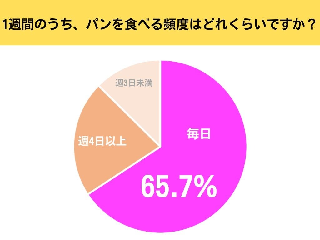 毎日パンを食べるという回答が65.7%と最も多く、週4日以上を合わせると約86%という高い割合となりました。一方で、ほとんど食べないという回答はゼロでした。