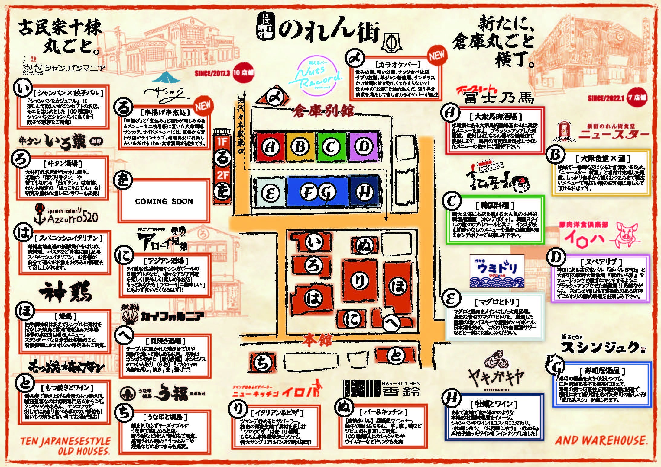 場所は、大都心『新宿・代々木』のど真ん中。ドコモタワーが高くそびえたつ麓に、ぽっかりと時を忘れてしまったかのような一画がありました。2017年3月に、資源の最大化と今の東京の礎となる心のふるさと(拠り所)を大切にしながら「新しい コト」を提案するべくオープンしたのが、古民家を丸ごと改装し、個性豊かな業態が軒を並べる横丁『ほぼ新宿のれん 街』。それから数年。2020年3月からのコロナ禍にも関わらず、おかげ様で沢山のお客様にご好評を頂いた折もあり『ほ ぼ新宿のれん街 倉庫別館』を2022年1月に開業しました。そして2023年2月にはさらに2店舗が仲間入りし、飲食店が合計19店舗が軒を連ねる、日本屈指の観光スポットにもなりました。