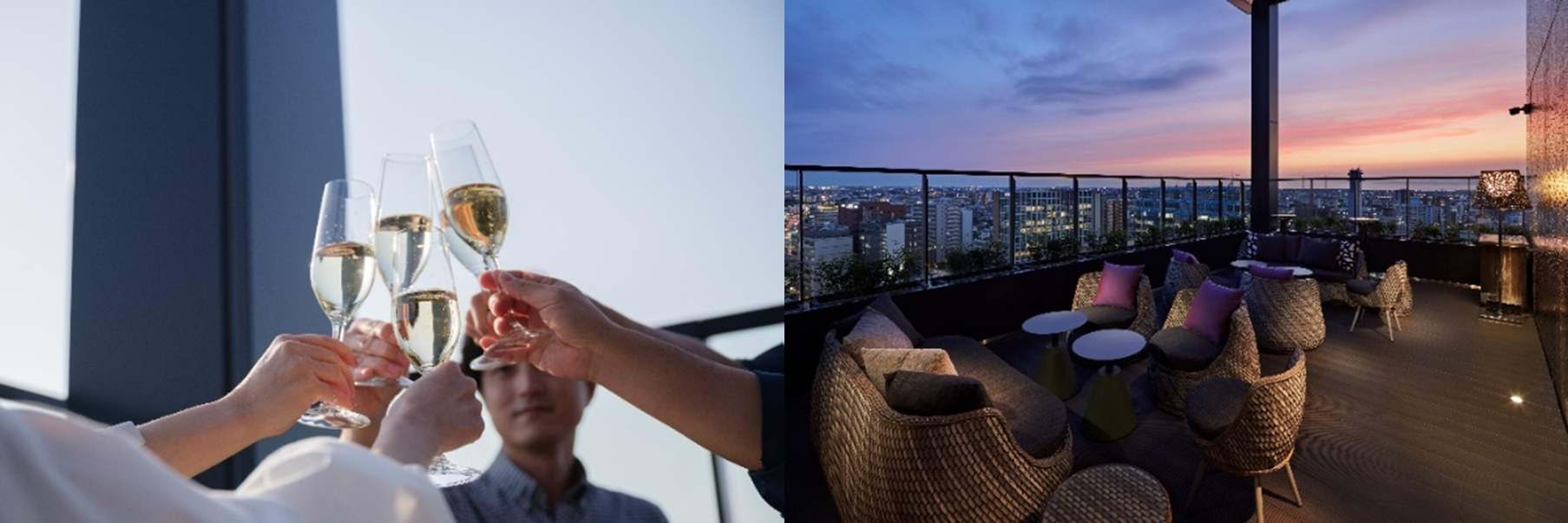 4月21日(金)より、ホテル最上階RoofTerrace Barの人気のテラス席がオープンいたします。17時から19時の間はお得なTwilight Happy Hourを。日本海に沈む夕陽が魔法の色に染まるマジックアワーの中でシャンパンをお楽しみください。