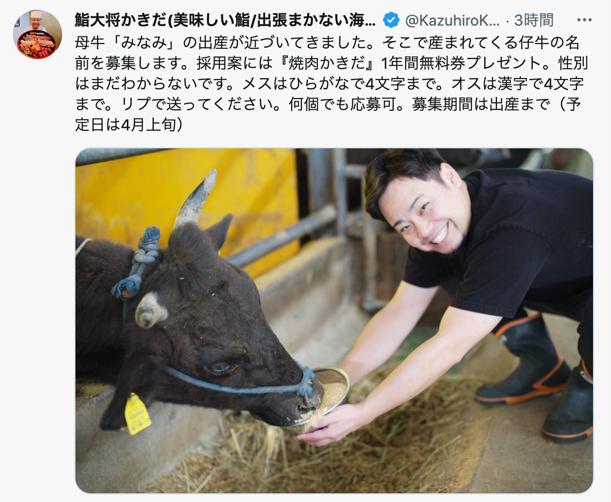 そして焼肉かきだにとって記念すべき母牛の初出産を祝して仔牛の名前を公募します。
