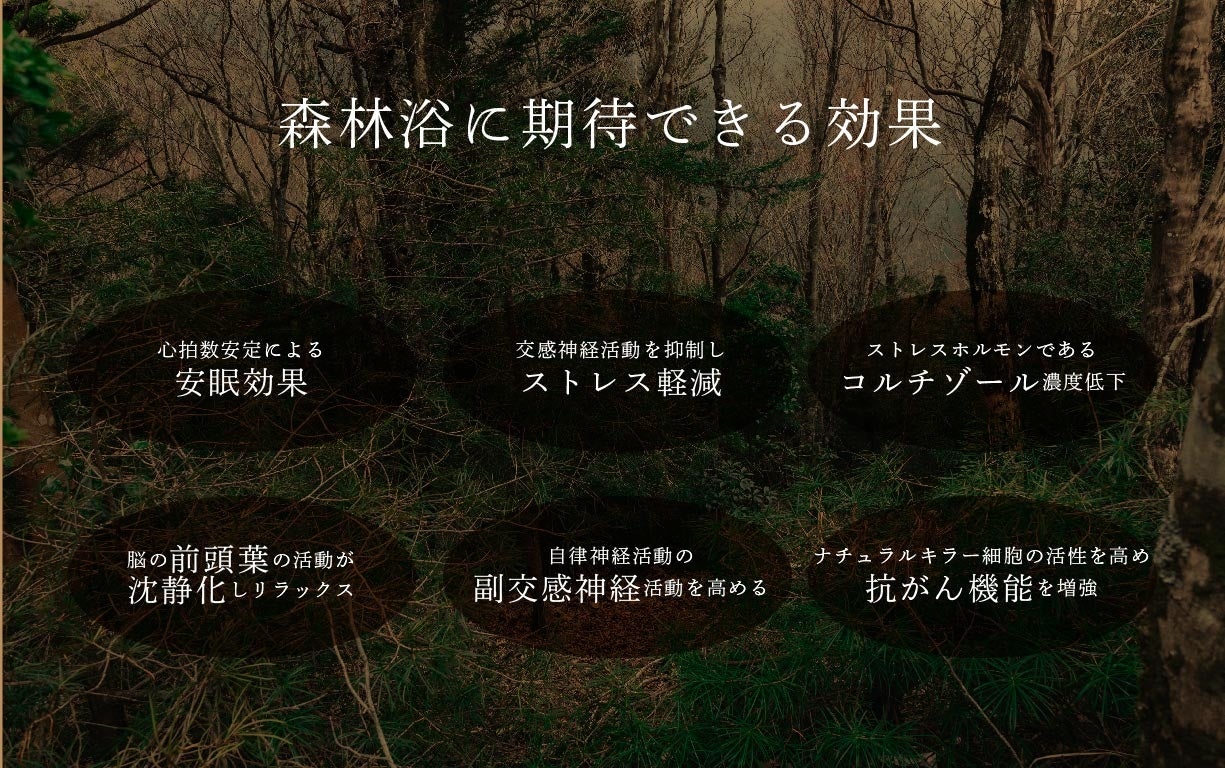 木に含まれる「フィトンチッド」という香り成分は、シトラスやベリーの様に華やかで爽快、そして甘い香りがします。研究では、精神安定効果が期待できると言われています。木の匂いのもとでは、ラットの睡眠時の脳波に心地よく眠っている時に現れるα波が20 ~ 30%増加。木の匂いはストレスで現れる精神的発汗を抑え、心拍数も安定するので安眠が得られるという結果もあります。その他、森林には脳の前頭葉の活動が沈静化し、脳活動がリラックスする、自律神経活動の副交感神経活動を昂進してリラックスさせ、交感神経活動を抑制してストレスを軽減する、ストレスホルモンであるコルチゾール濃度を低下させ、ストレスを減少させる、免疫能のうち、ナチュラルキラー細胞の活性を高め、抗がん機能を増強する効果などがあります。