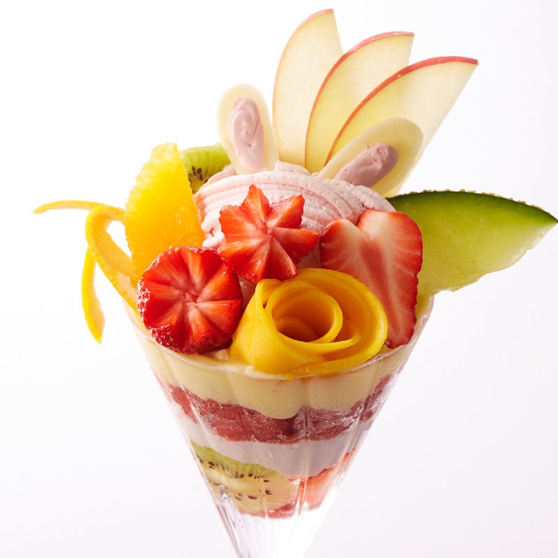 そんなイースターをお祝いするパフェは、春らしくカラフルなフルーツとイースターバニーを飾りました。