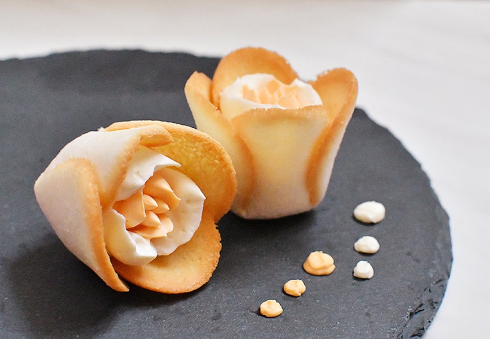 ●芳醇ゴーダチーズのチューリップラングドシャに、4種チーズのショコラクリームローズ。