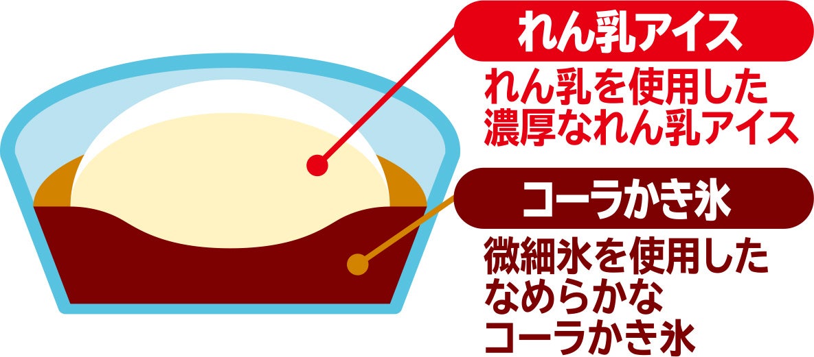 すっきりとした清涼感のあるコーラ味のかき氷の上に、濃厚なれん乳アイスをドーム状に乗せた氷菓カップアイスです。