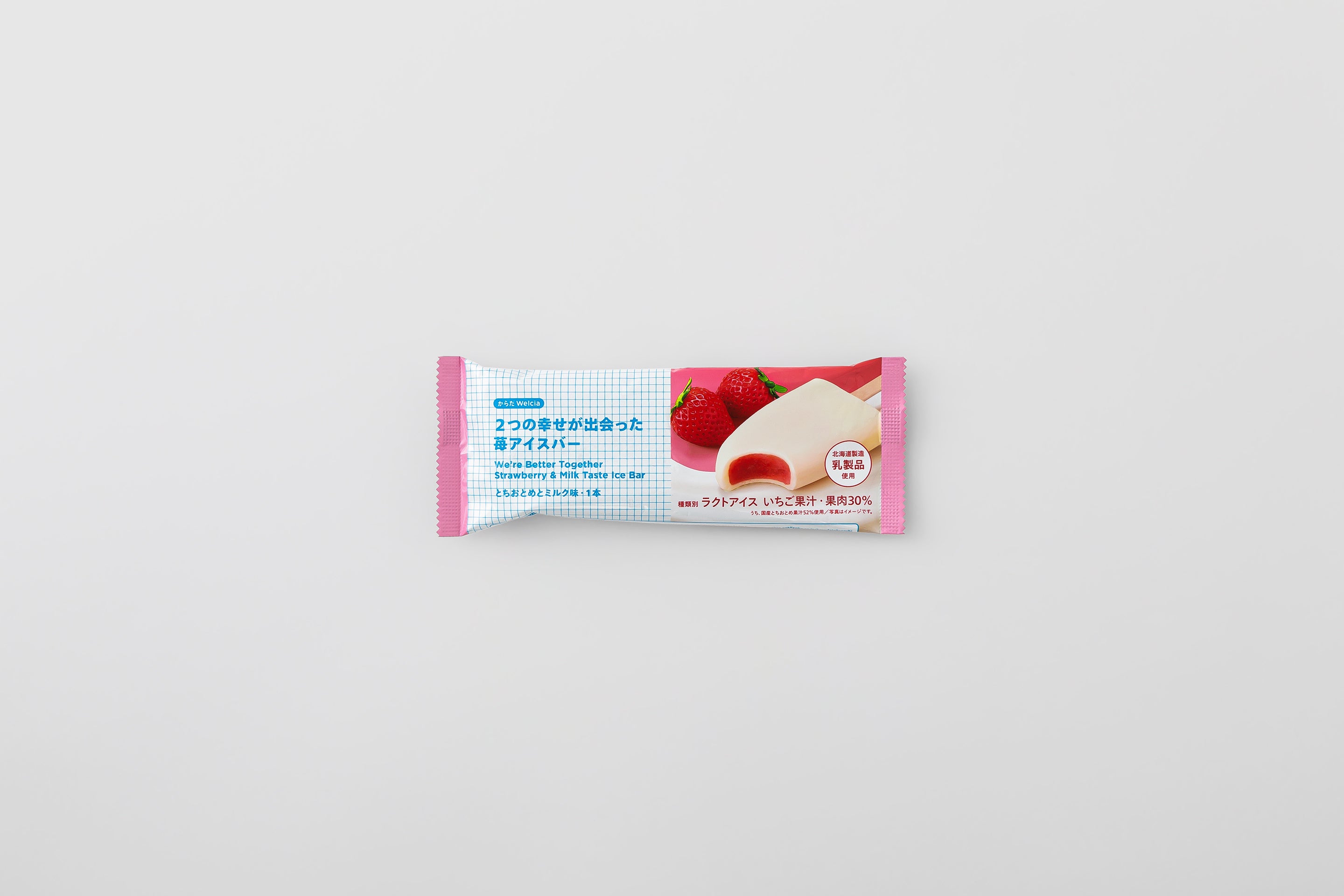 ミルクアイスと果肉入りいちごアイスの2層構造のアイスバーです。