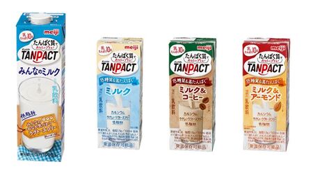 「明治TANPACTミルク」「同ミルク&コーヒー」「同ミルク&アーモンド」(各200ml)