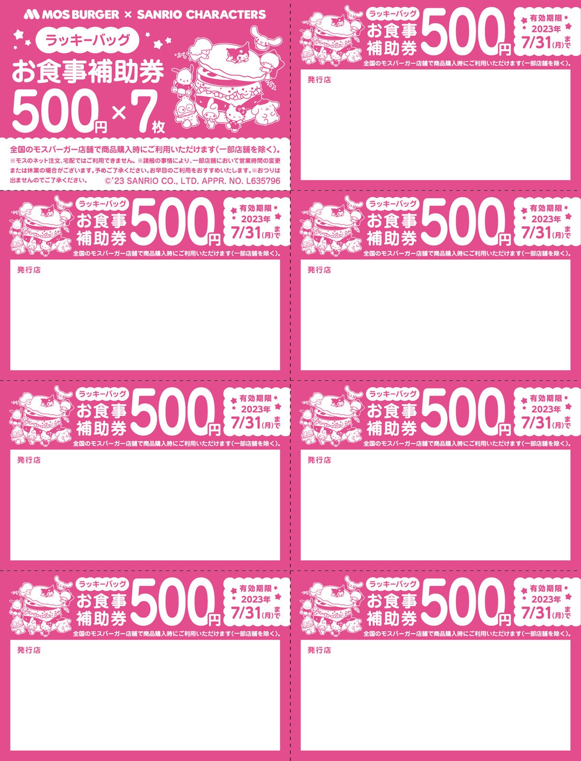 モスバーガーを展開する株式会社モスフードサービス(代表取締役社長:中村 栄輔、本社:東京都品川区)は、2023年4月25日(火)から全国のモスバーガー店舗(一部店舗除く)にて、株式会社サンリオの人気キャラクターが集合した『サンリオキャラクターズ』とコラボレーションしたグッズと、福袋の販売額相当の“お食事補助券”が入った「モスバーガー×サンリオキャラクターズ 春のラッキーバッグ」(税込3,500円)を数量限定で販売します。また2023年4月4日(火)午前9時 ~ 2023年4月20日(木)の間、ネットでの事前予約を受け付けます。