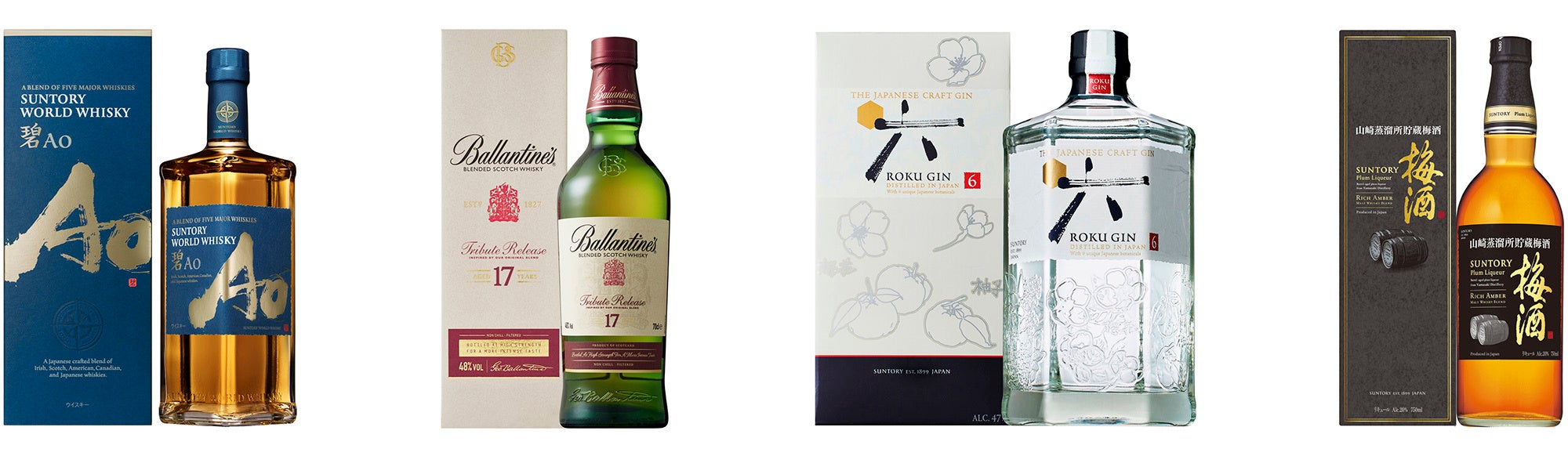 世界5大ウイスキー産地の自社蒸溜所でつくられた原酒のみをブレンドした世界初のウイスキー、SUNTORY WORLD WHISKY「碧Ao」のギフトパッケージに加え、「バランタイン17年 トリビュートリリース」、サントリージャパニーズクラフトジン「ROKU」、「サントリー梅酒 〈山崎蒸溜所貯蔵梅酒〉リッチアンバー」など多彩なラインナップで、お客様のさまざまなニーズにお応えします。