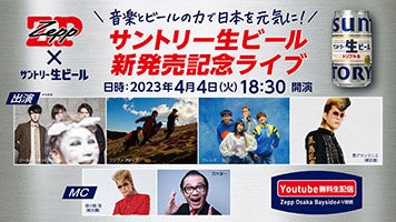 (株)Zeppホールネットワークと当社は公式ドリンクパートナー契約を締結し、4月4日(火)からコンサートホール「Zepp」(全国8ホール)で「サントリー生ビール」を販売します。